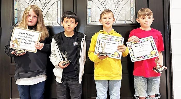 PHOTOS PROVIDED / THE VILLAGE REPORTER SECOND GRADE … Brandi Massey – Student of the Year, Omar Acosta – Student of the nine weeks, Zaiden Wheeler – Student of the nine weeks, Madix Munger – Student of the Year.THIRD GRADE … Dean Maginn – Student of the nine weeks, Brooks Wyrick – Student of the year, Kensington Creek – Student of the year, Emersyn Adams – Student of the nine weeks.STUDENTS OF THE MONTH … Row 1 – Ava Szymanski, Gracelynn Dye, Aubrey Massey. Row 2 – Mary MacKinnon, Zaiden Wheeler, Eli Knapp, Kennedy Shantz, Kendall Moreland, Allison Haines. Row 3 – Brandi Massey, Sidney King, Kaedence Heller, Ginger Fackler, Quinn Fellers, Maci Delong. The character theme for May was Eagle Hero.FIRST GRADE … Hayden Steusloff – Student of the nine weeks, Ava Pannell – Student of the nine weeks, Allison Haines – Student of the Year, Kennedy Shantz – Student of the Year.FOURTH GRADE WINNERS … Maci DeLong – Math, Jayden Massey – Social Studies, Isabell Birdsall – Science, Gracelynn Meek – Most Improved, Allyson Wells – Rading, Leandra Miller – Language Arts, Bryan Perez – Eagle Way, Allie Camacho – Eagle Way.FIFTH GRADE WINNERS … Harper Fraley – Eagle Way, Juliana Rojan – Social Studies, Gabriel Workman – Reading, Paizlee Zimmerman – Science, Kayden Solano – Language Arts, Gabriel Demots – Math, Kale Gruber – Eagle Way, Sierra Burger – Most Improved.SIXTH GRADE WINNERS … Dakota Brigle (Most Improved), Cambrie Elston (Eagle Way), Candace Gendron (Reading), Jaelyn Houk (Math), Keagan Crivello (Social Studies), Landon Eckley (Science, Language Arts, Eagle Way).