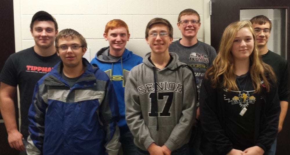 North Central announces the September and October Eagle Club winners. These are students who have been recognized for making a positive contribution to North Central High School, but don’t always get recognized. They are: Front Row: Austin Echler, Jason Vassar, Chloe Masters. Back Row: Kodi Bentley, Tyler Cheesbro, Andrew Baughman, and Hunter Wilson. Not pictured: Tiara Mervyn, Gavin Cogswell.