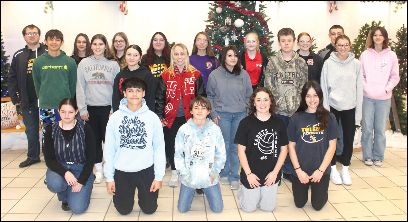 NOVEMBER SOTM … Hilltop High School and Junior High November Students of the Month are as follows: Front row – Ahlea Judy, Alejandro Rubalcava, Ivan Brehm, Carlee Schaffner, Nayah Rodriguez. Middle row – Ezra Mahlman, Aubree Miklovic, Krysten Adkins, Kuszmaul, Brooklyn, Leah Ankney, Liam Wilbur, Addison Whitman. Back row – Nate Wieland, Jazmyn Castillo-Edelman, Samantha Grimm, Addyson Draggoo, Emily Suydam, Savannah Ross-Yocklin, Julia Dickinson, Bryce Peters, Maggie Altman.