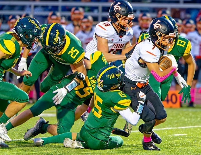 Kruse ran for 121 yards and two touchdowns while Trenton Kruse added 63 yards on ten attempts. Max Mossing accounted for the lone Viking touchdown on a 79-yard run in the fourth quarter.