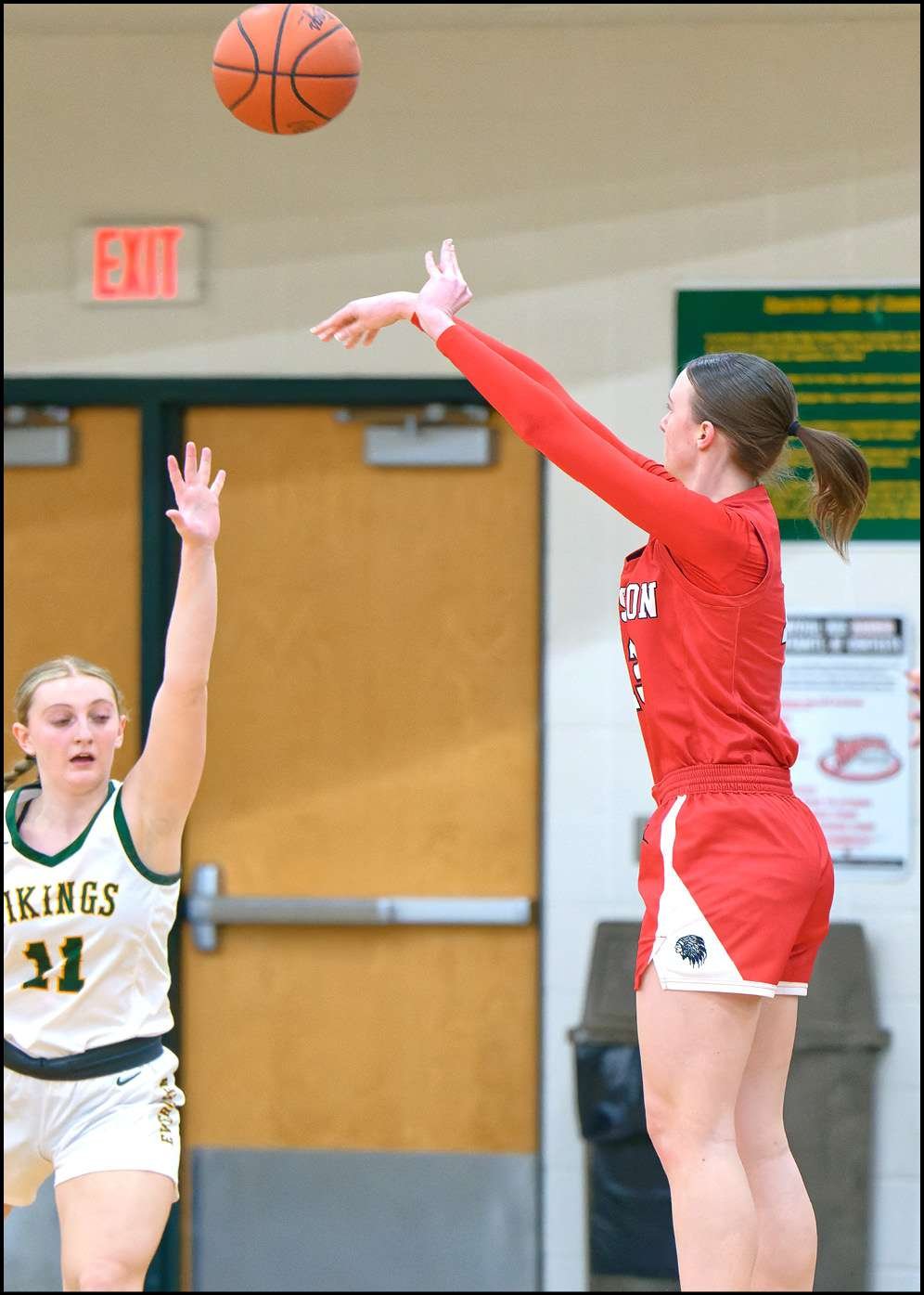 LONG RANGE JUMPER … Sophia Rupp launches a three-ball for Wauseon in Thursday’s NWOAL game at Evergreen.