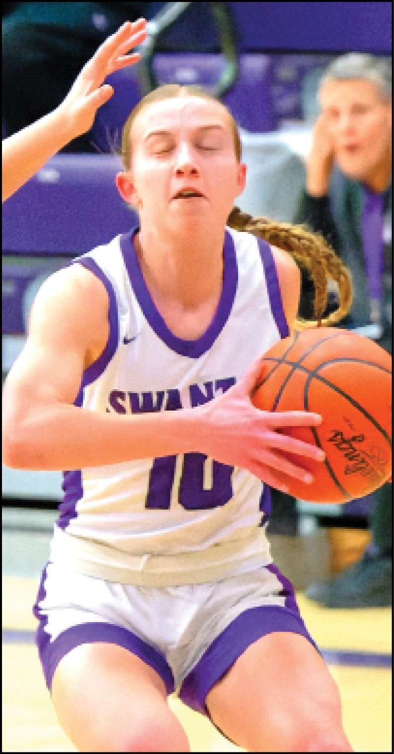 DRIVE TO THE HOOP … Swanton senior Lauren Bettinger makes a strong drive to the bucket in the first half versus Evergreen.