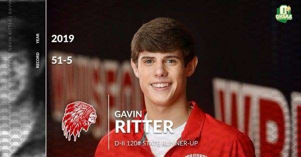 120lbs- Wauseon’s Gavin Ritter finishes an outstanding career as State Runner-Up as he is defeated 5-4 by Garett Lautzenheisler of Louisville