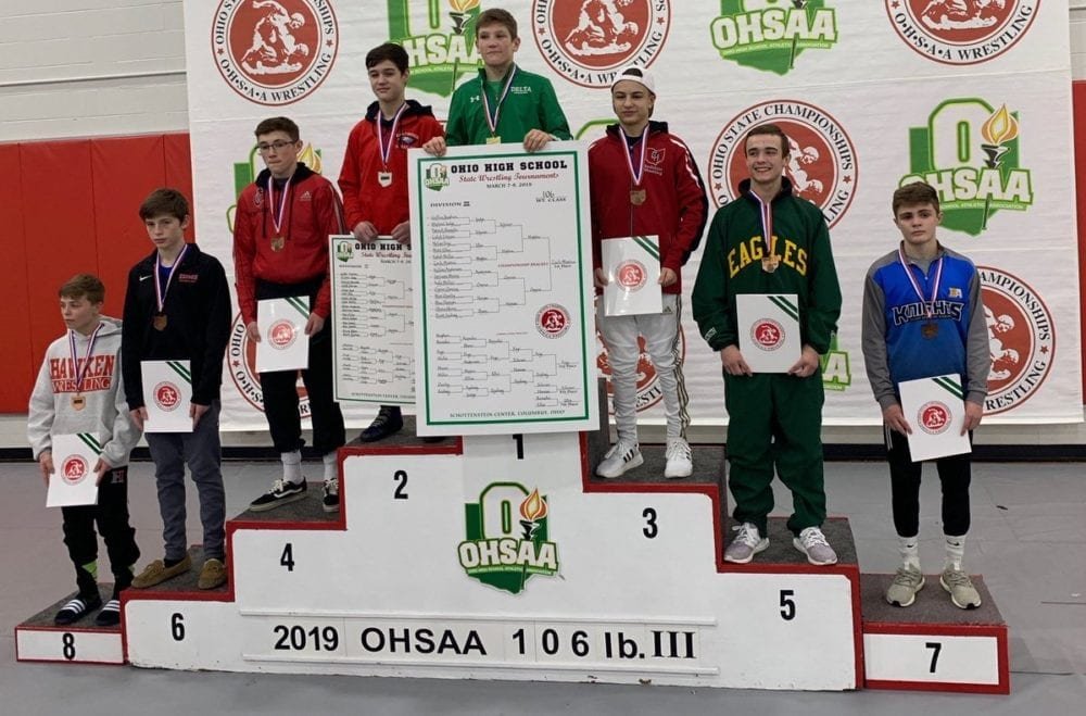106lbs- Zack Mattin of Delta won the State Championship by defeating Gavin Owens of Eastwood 8-1