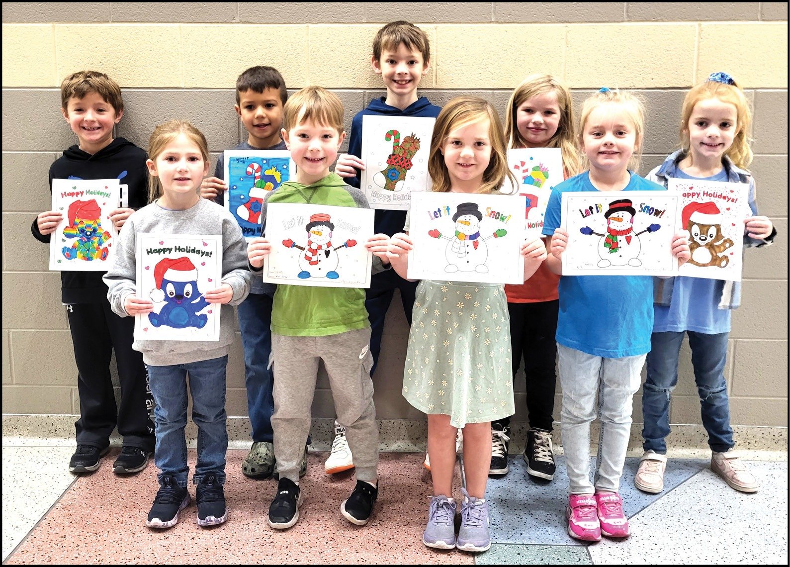 CONTEST WINNERS … The Olde Tyme Holiday Gathering Committee partnered with Ms. Corkle and the Montpelier Elementary School to host a coloring contest for Kindergarten through 2nd grade. Each selected winner received a gift certificate to Bill’s Locker Room 3. Pictured are the winners: Back Row: Kayson Slane, Carter Aquino, Brycen James, Gracie Endicott, Eden Saneholtz. Front Row: Elsie Thorp, Owen Lockwood, Leah Reese, Ryleigh Norrick.