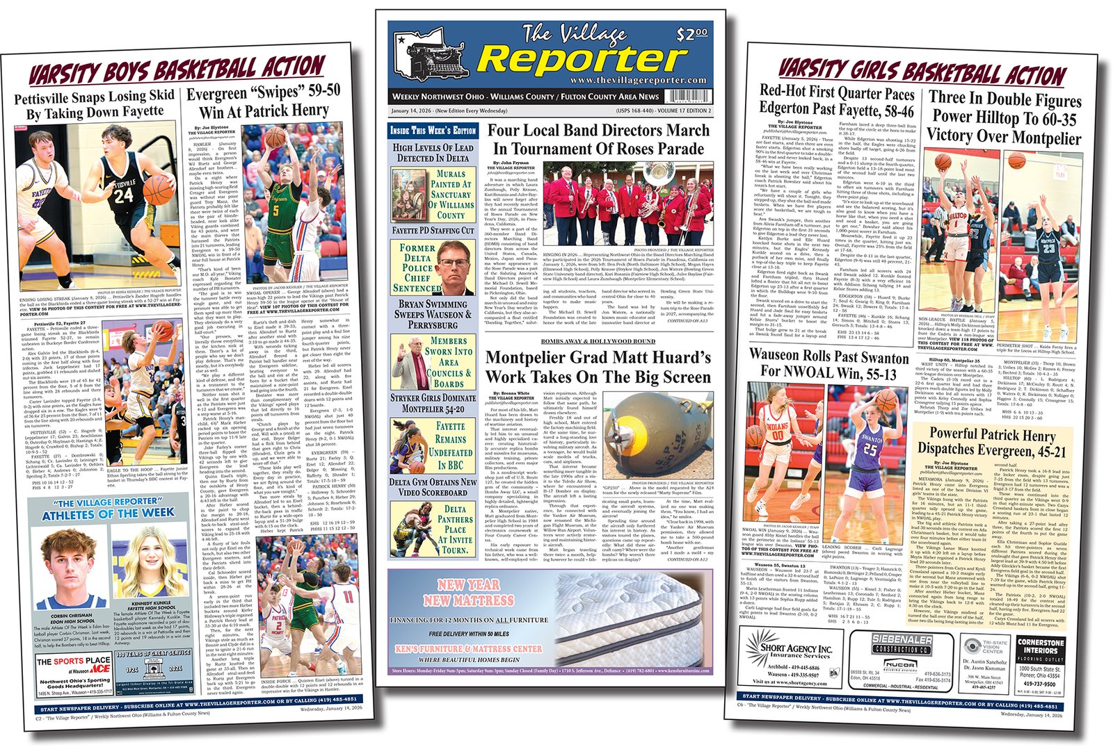 Inside this week’s newspaper edition, you will find 38-pages of the news you care about most – LOCAL community news and sports. Subscriptions include mailing the traditional print copy and the weekly emailed E-Edition, along with giving full access to news stories as they become available here online (daily news format). Not a subscriber? Purchase a single print or E-Edition copy before newspapers are replaced on Wednesday, January 21, 2026.