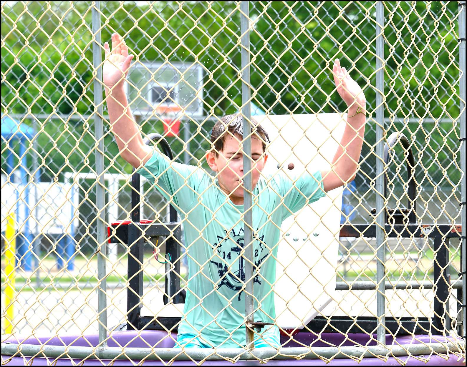 DUNK … A dunk tank was set up at this year’s Metamora Party in the Park event. Volunteers sat and waited for others to throw the ball and knock them into the water.