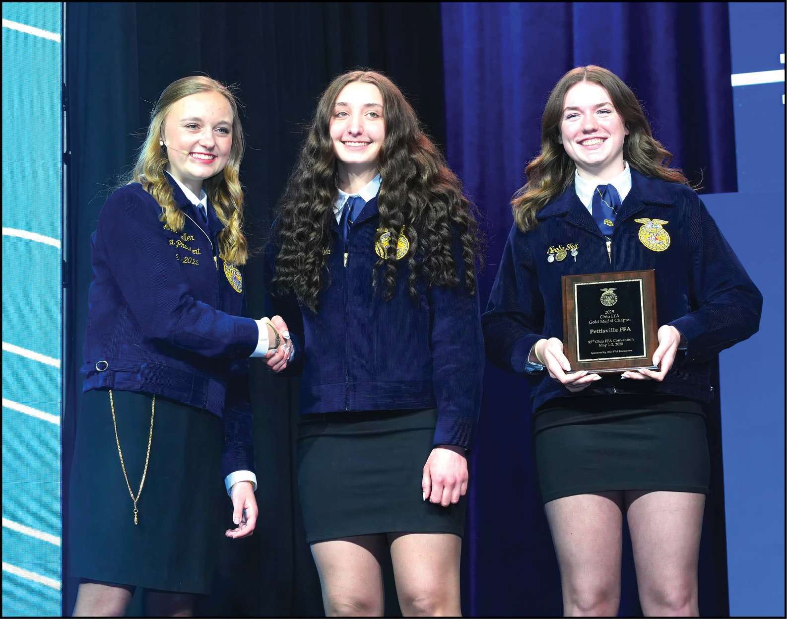NATIONAL CHAPTER … On Thursday May 1, Pettisville FFA was recognized as a Gold Medal Chapter in the Ohio FFA Association. This award is given to the top 10% chapters in the state. Receiving the award on stage were Courtney Weimken and Noelle Fox.