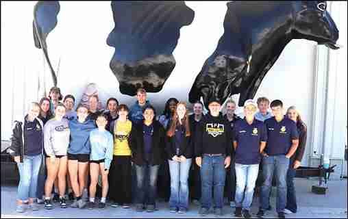 GREENHAND DAY … Twenty-one Pettisville FFA members posed in front of Sterlina the Cow at the Fulton County Fairgrounds after they attended the Fulton County FFA Greenhand Day. Back Row (from left): Genevieve Galvin, Caiden Schuller, Bailey Booth, Hannah Fox, Courtney Wiemken, Kyle Galvin, Phoebe Cavanagh, Noelle Fox, Olivia Miller, Alex Galvin and Ava Genter. Front Row (from left): Olivia Beck, Baylee Tietje, Caite Wixom, Alyssa Ledyard, Kanon Ryan, Natalia Alencastro, Sophie Wilke, Carter Beck, Creighton Aeschliman, and Kaleb Wyse.
