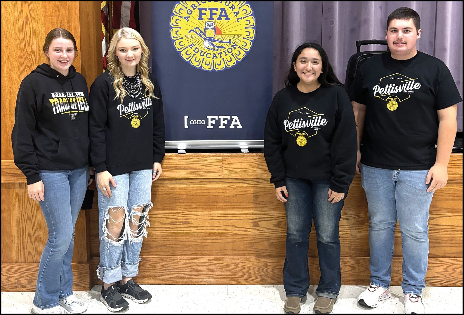 OHIO FFA LEADERSHIP NIGHT … Four Pettisville FFA members participated in the Ohio FFA Leadership Night held at Fayette High School on November 5. Members were put to the test with their communication skills and met with members from other chapters. From left: Genevieve Galvin, Ava Genter, Natalia Alencastro, and Tobin King.