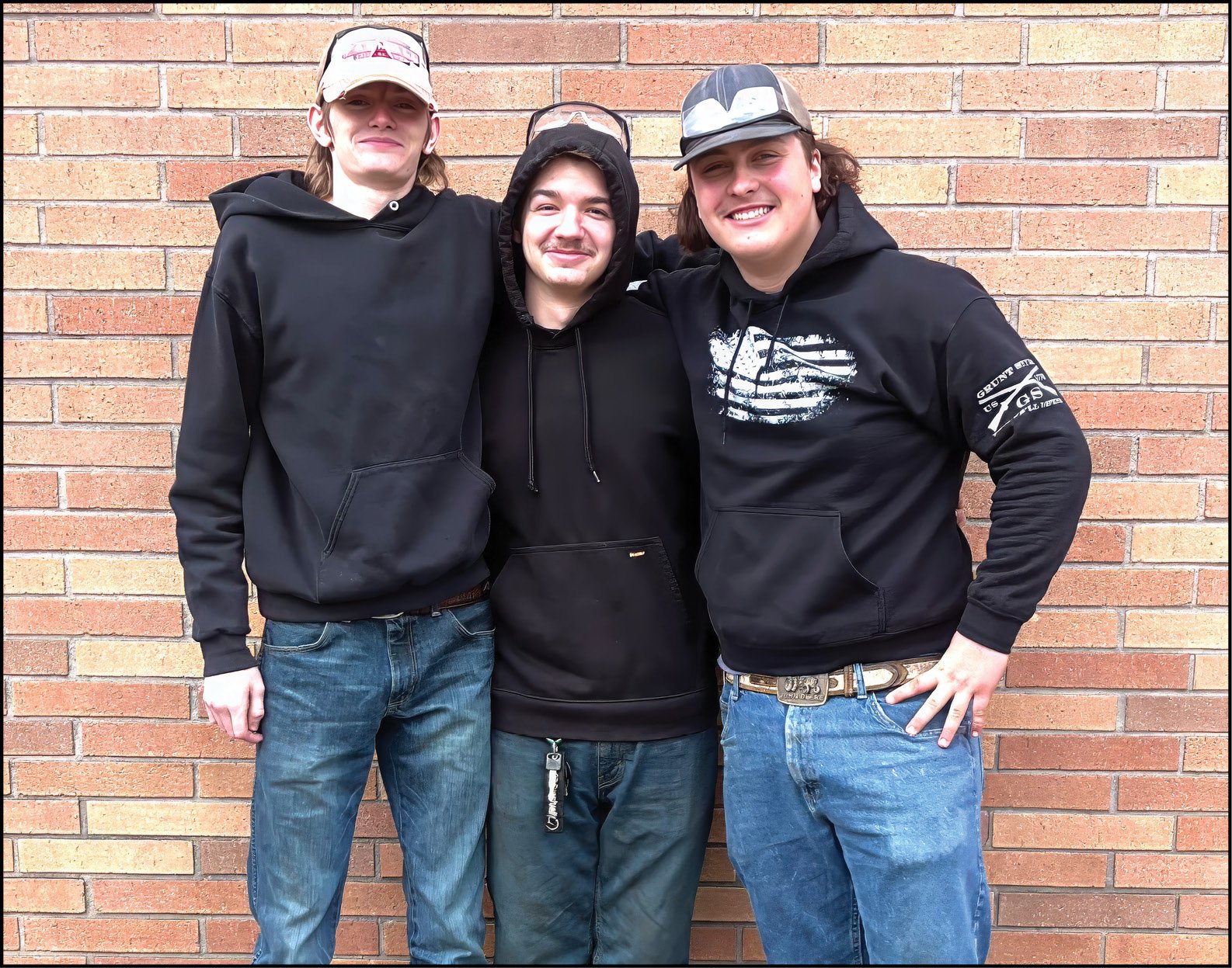OUTDOOR POWER … Gavin Dahlke, Ben Nagel, and Collin Nichols smile after their successful finish at the Outdoor Power CDE held on March 6th at Four County Career Center.