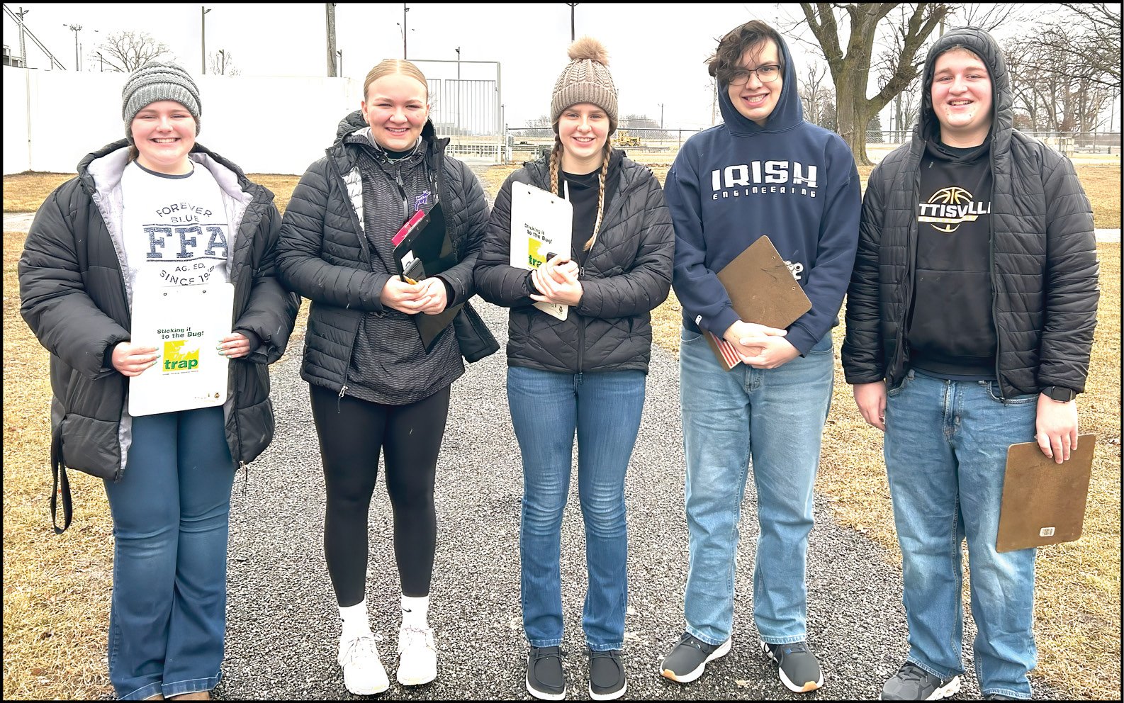 POULTRY TEAM … Olivia Beck, Ali Genter, Genevieve Galvin, Gavin Sifuentes, and Carter Beck competed in the Poultry CDE at the Fulton County Fairgrounds on March 4th.
