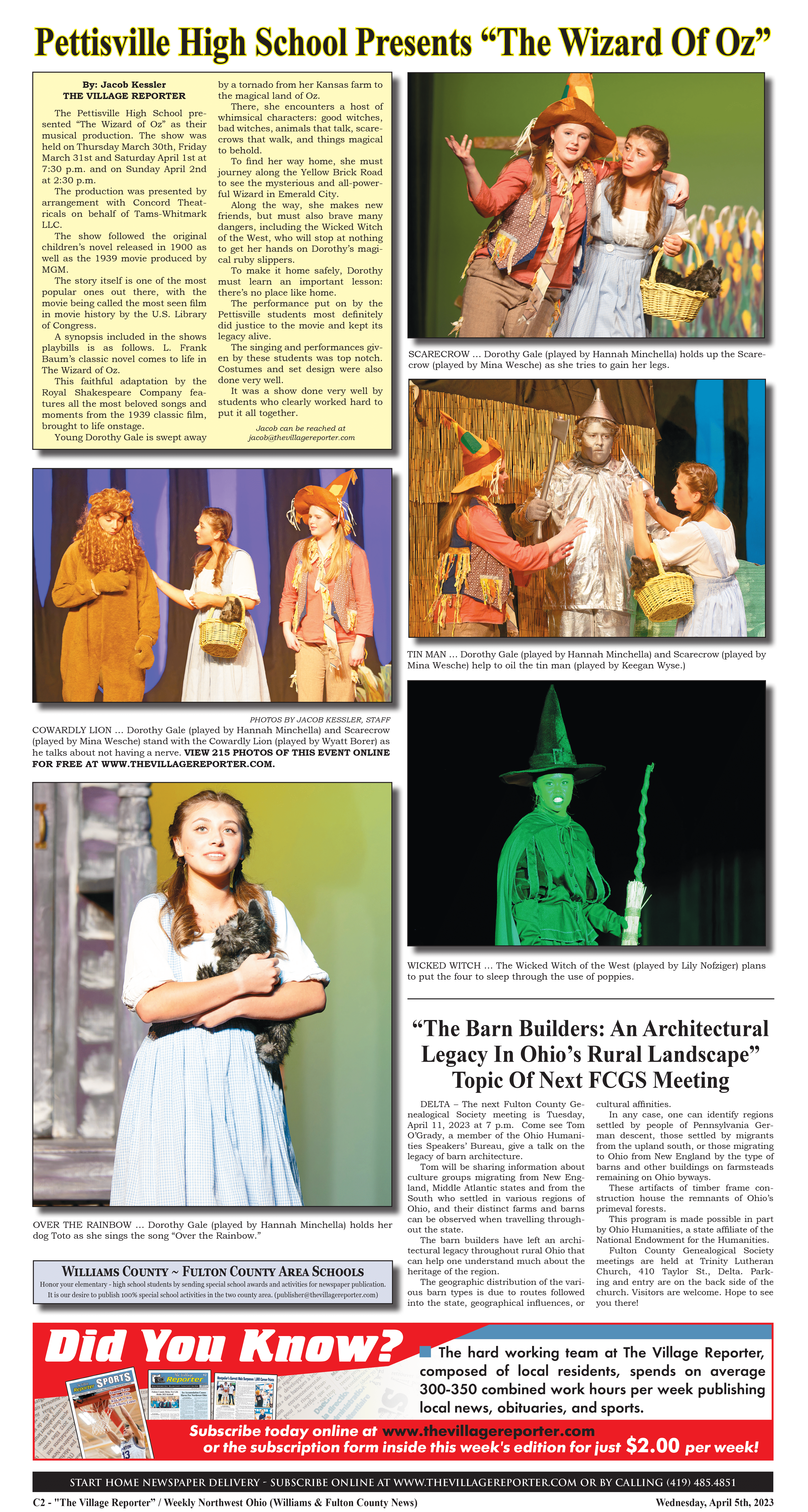 The Pettisville High School presented “The Wizard of Oz” as their musical production. The show was held on Thursday March 30th, Friday March 31st and Saturday April 1st at 7:30 p.m. and on Sunday April 2nd at 2:30 p.m. The production was presented by arrangement with Concord Theatricals on behalf of Tams-Whitmark LLC.