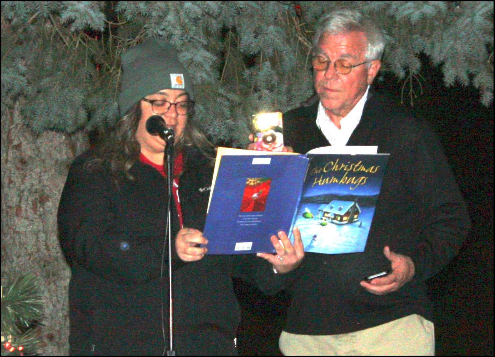 CHRISTMAS STORY … Katie Grine, with help from Mayor Ed Kidston, read “The Christmas Humbugs.”