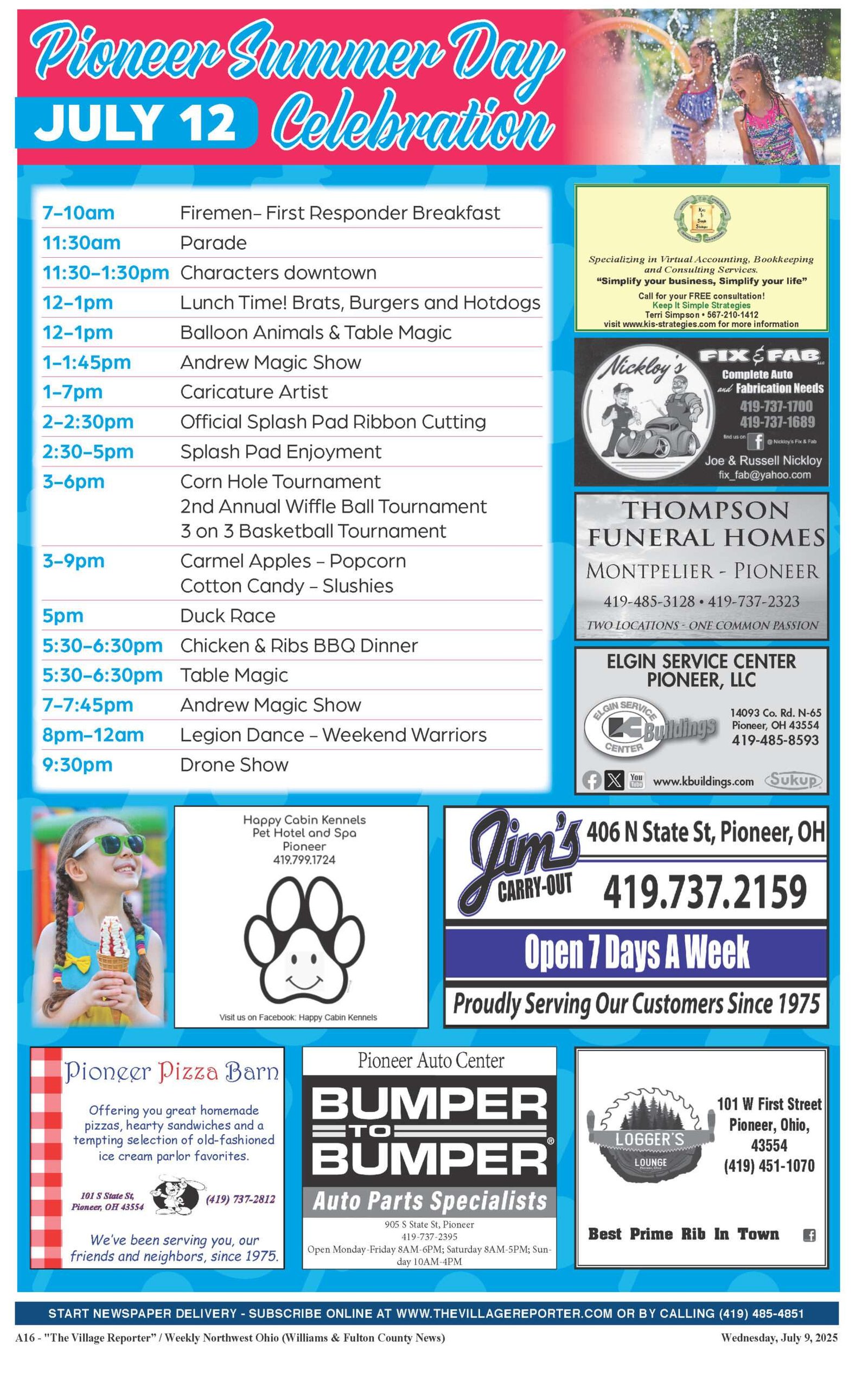 Don’t miss Pioneer Summer Day—packed with family fun, food, magic shows, games, and a drone show this Saturday in downtown Pioneer!