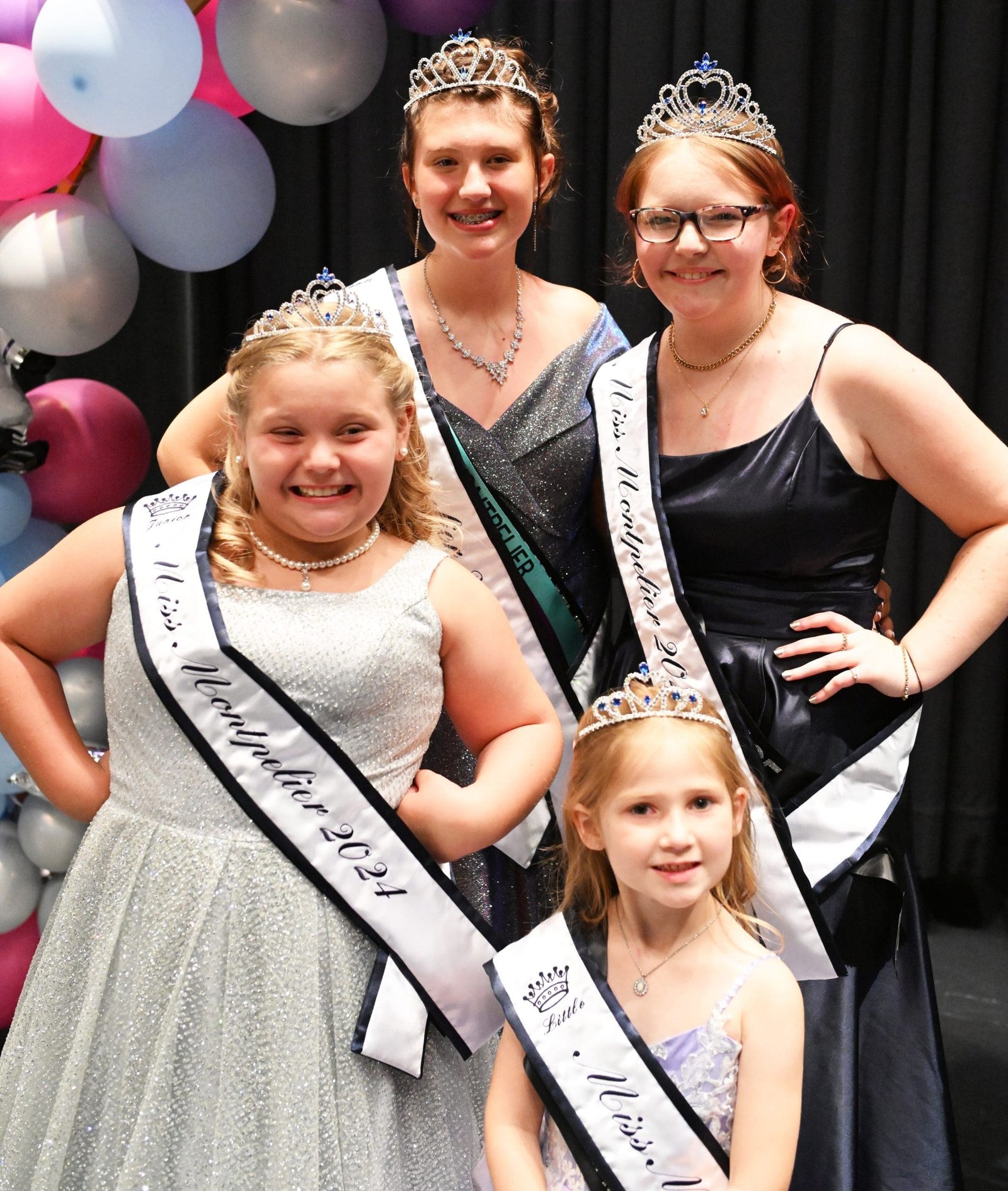 PAGEANT WINNERS … Pride of Montpelier Pageant’s newest crowned Miss Montpelier Queens. (Back) Teen Miss Montpelier Rosalee Mills, Miss Montpelier Piper JoHantgen. (Front) Junior Miss Montpelier Kaylee Barrett, and Little Miss Montpelier Elsie Thorp. VIEW 260 PHOTOS OF THE PAGEANT FOR FREE AT WWW.THEVILLAGEREPORTER.COM
