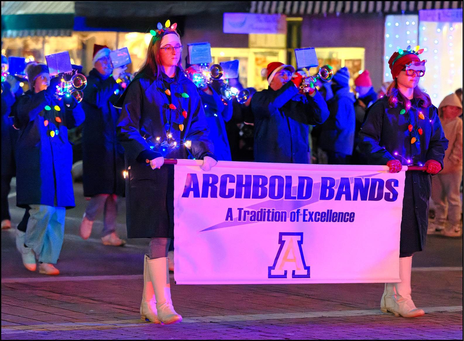 BAND … Members of the Archbold High School Marching Band during the city’s annual Parade of Lights.