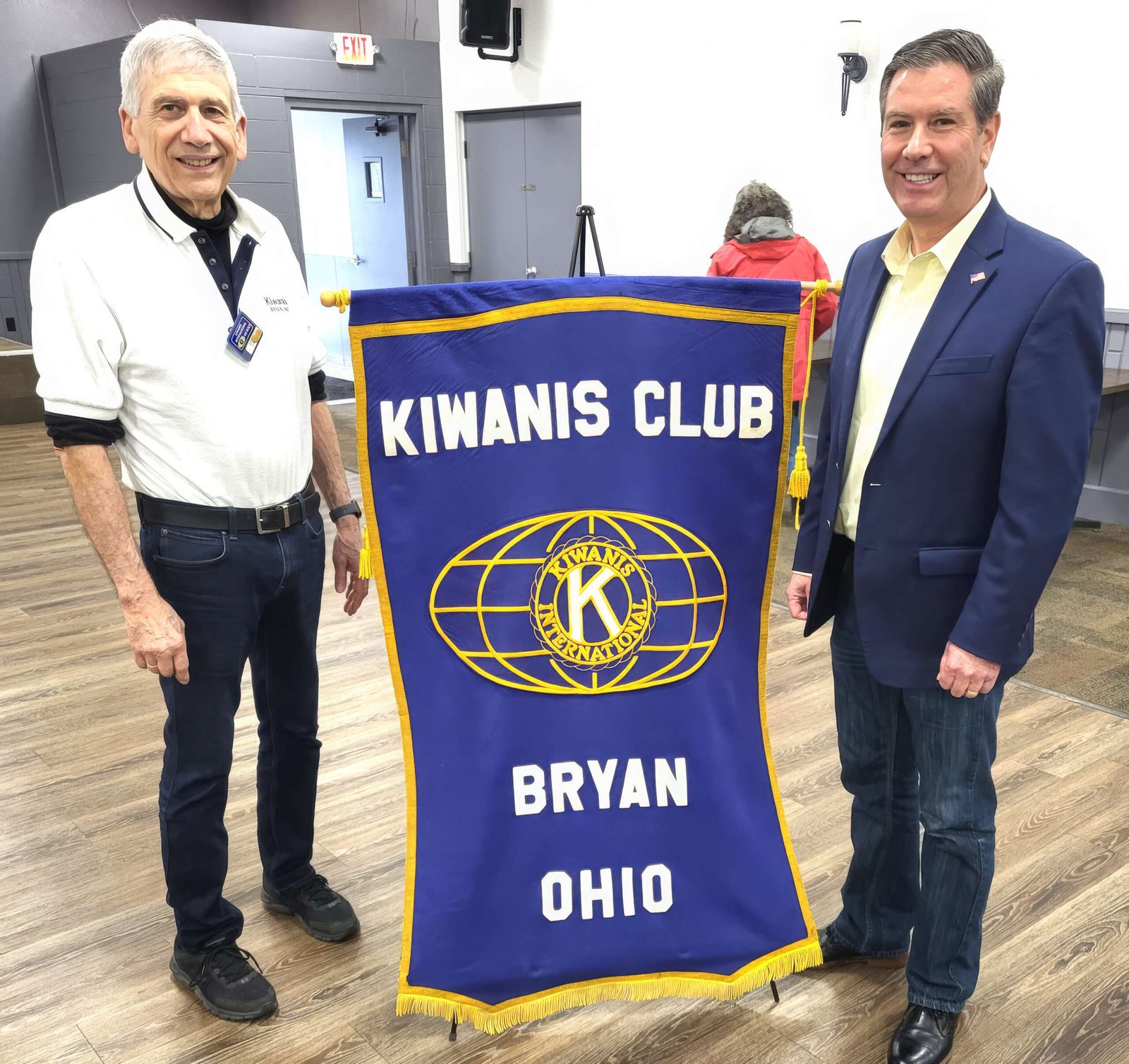 CANDIDATE VISIT … The guest speaker at the Kiwanis Club of Bryan’s meeting on April 1 was Craig Riedel. Mr. Riedel is a candidate for the Ohio 1st District state Senate seat here in Northwest Ohio. Mr. Riedel previously served in the Ohio State House representing the 82nd District for six years. He spoke with the group about his vision of government and broadly outlined what he would like to accomplish if elected. Mr. Riedel is a resident of Defiance with his wife Danette. They have two adult children and three grandchildren. Pictured left to right: Kiwanis President David Schum and Craig Riedel.