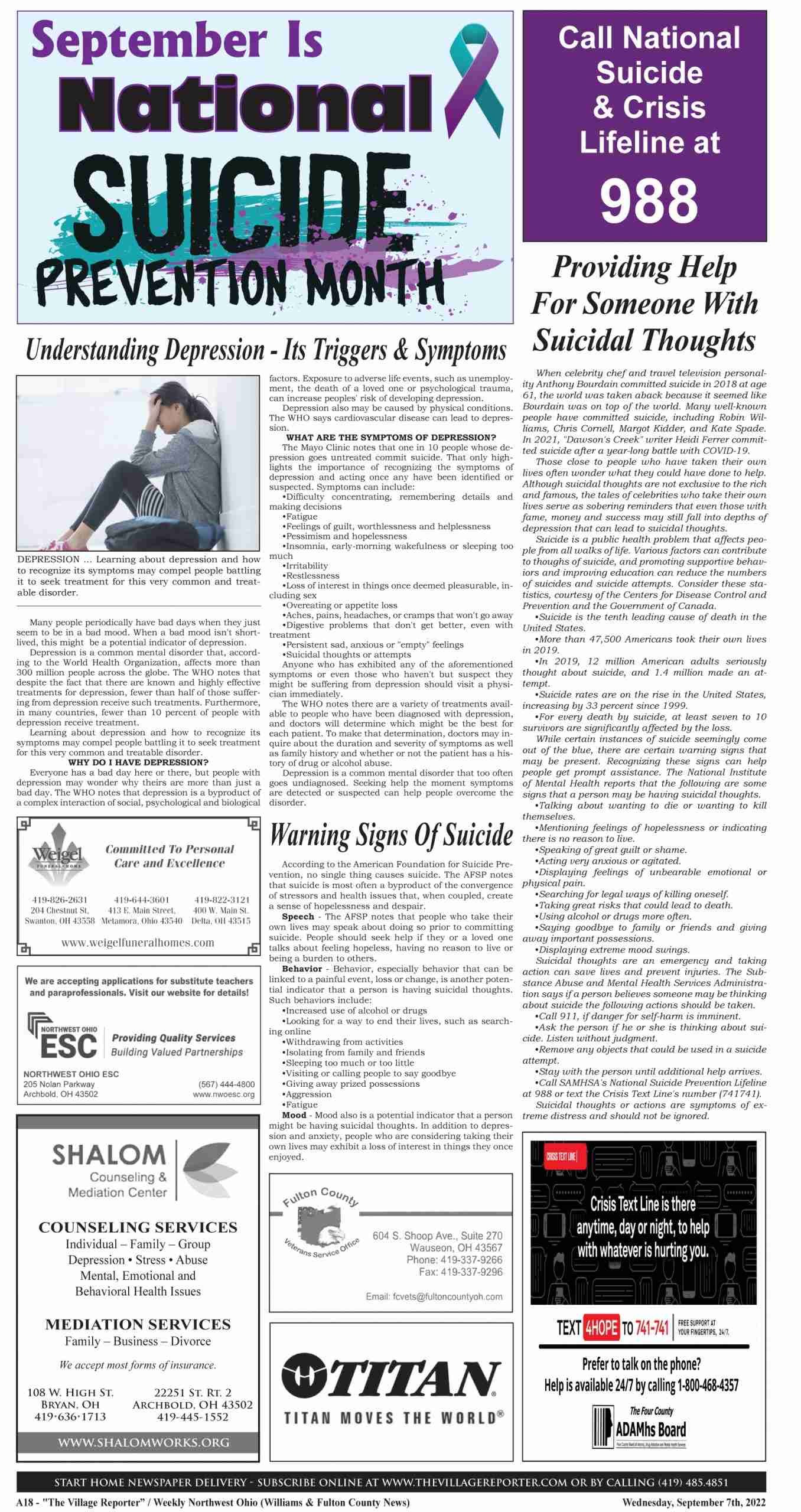 September is National Suicide Prevention Month.  Call the National Suicide and Crises Lifeline for help!