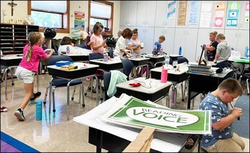 SCIENCE … Pictured are Mrs. Ricardson’s 2nd grade students at St. Mary School participating in a science experiment.