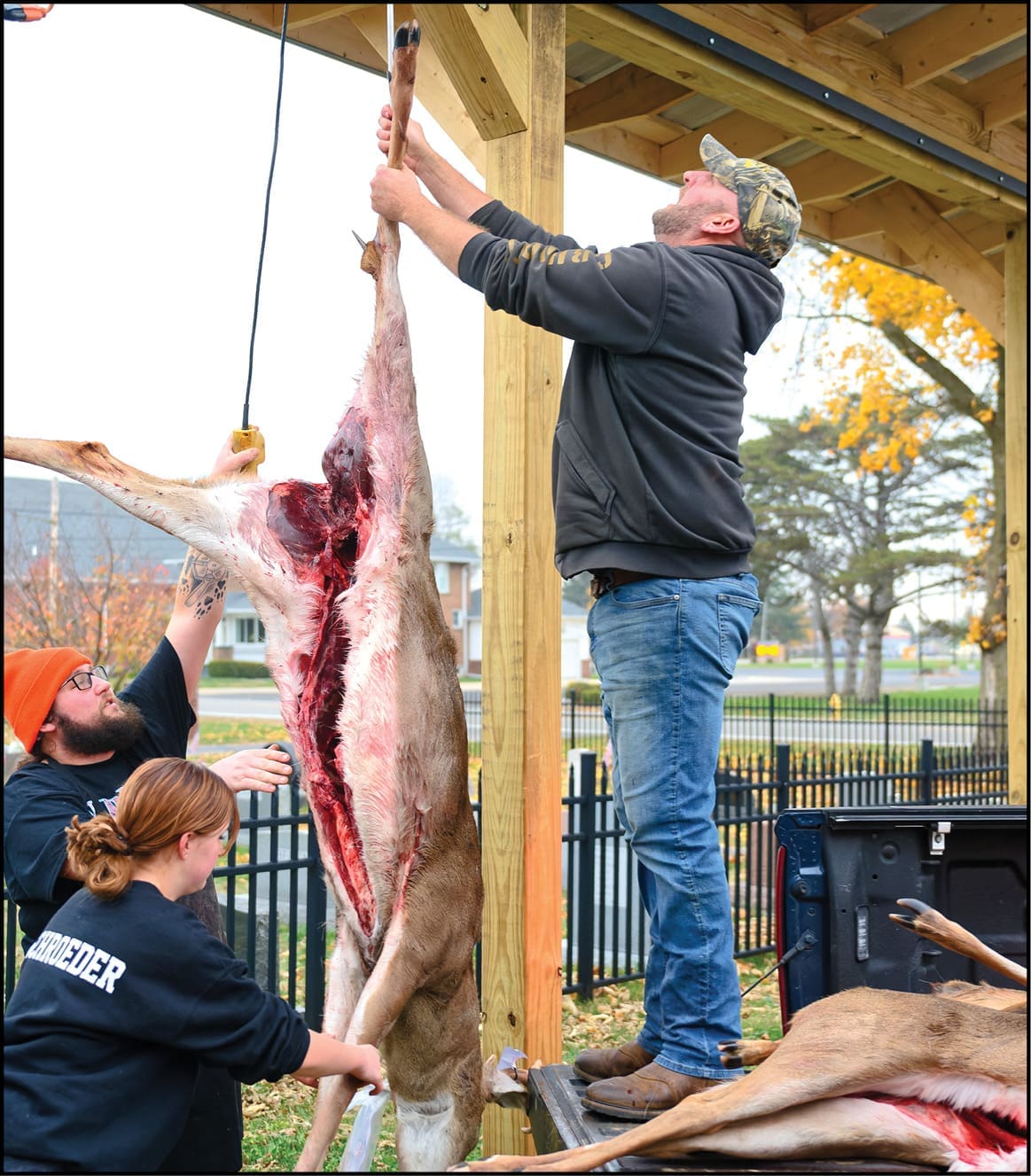 The deer were hung up on a permanent 30-foot rail that was installed out in front of the store for both the youth and adult event.