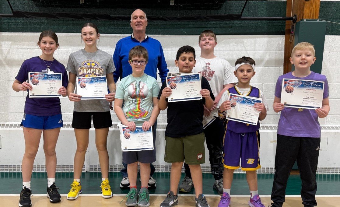 FREE THROW WINNERS … The annual Bryan City Free Throw Championship was held on Sunday January 19th at St. Patrick School. The event was sponsored by the Bryan Knights of Columbus Council 1915. Athletes from ages 9-14 were given a chance to show their skills in this head-to-head competition. Each of the youth took 15 free throws from the legal distance. The best shooters move on to the district competition on February 2, at Edgerton High School at 1 p.m. Local winners were Mason Grime, Karli McDade, Allie Elkins, Nick Grime, Omar Guzman, Michael Huard, and Zachary Hess.