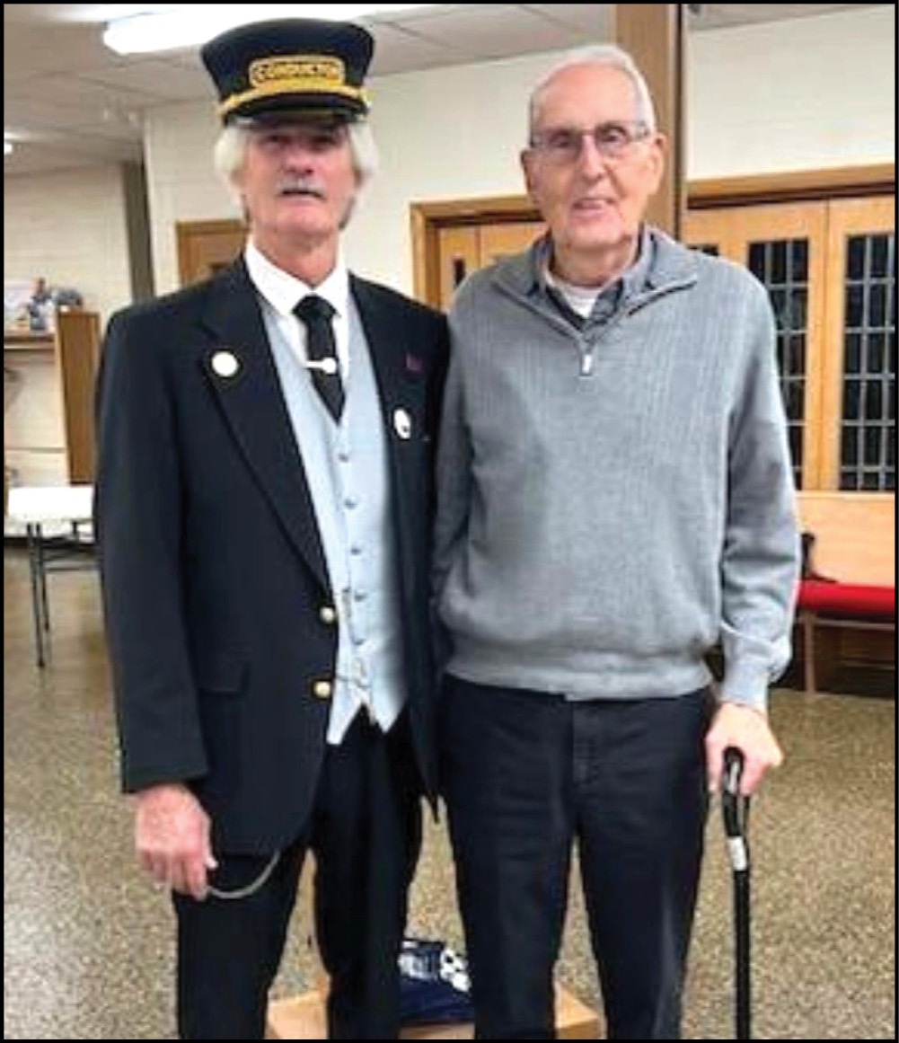 TRAIN HISTORY … The Stryker Area Heritage Council recently held their annual membership banquet at the Stryker United Methodist Church. Randy Bible, representing the Wabash Railroad Historical Society, was the guest speaker. He gave an interesting and informative presentation on the railroad and its importance to Stryker. Trains greatly enhanced the town’s economy. Trains used to stop regularly in Stryker for the pick up and delivery of goods. In the past, boat oars, manufactured in Stryker, were loaded on the train and from here shipped around the world. The same was true for farm crops and other goods produced in Stryker. Passenger service continued until the late 1950’s. He told of the “pans,” unique to Stryker, that existed just east of town that allowed steam engines to load water without stopping. He had many other entertaining stories about passengers and porters on the passengers trains. Mr. Bible also brought a display of posters, train replicas, and other vintage railroad paraphernalia to share. The group appreciated the work and research that went into this presentation. It was an enjoyable evening. Pictured from left is Randy Bible, President of the Wabash Historical Society, and Terry Wieland, President of the Stryker Area Heritage Council.