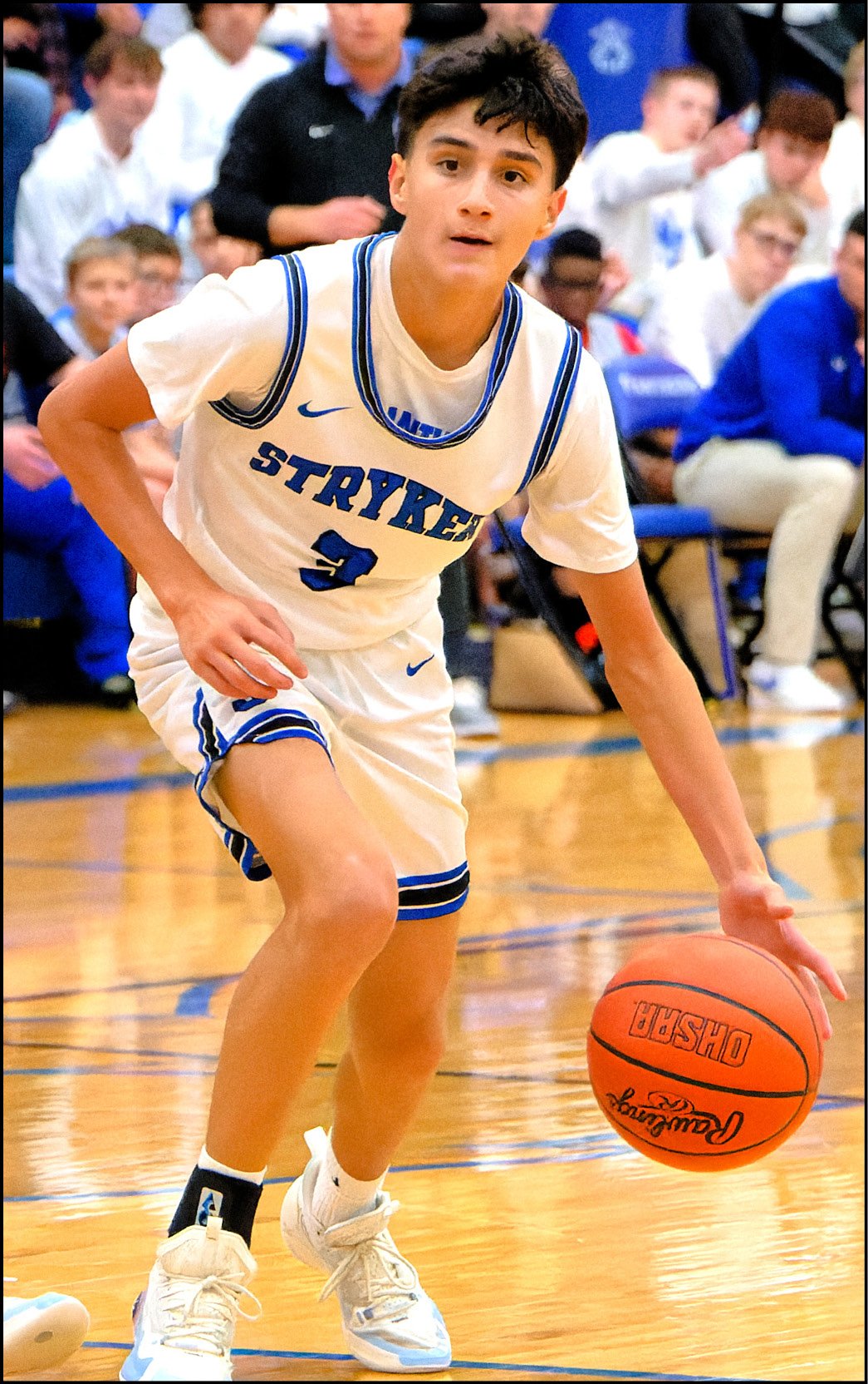 SURVEYING THE FLOOR … Stryker’s Bradley Williams handles the ball during last Tuesday’s win over Fayette.
