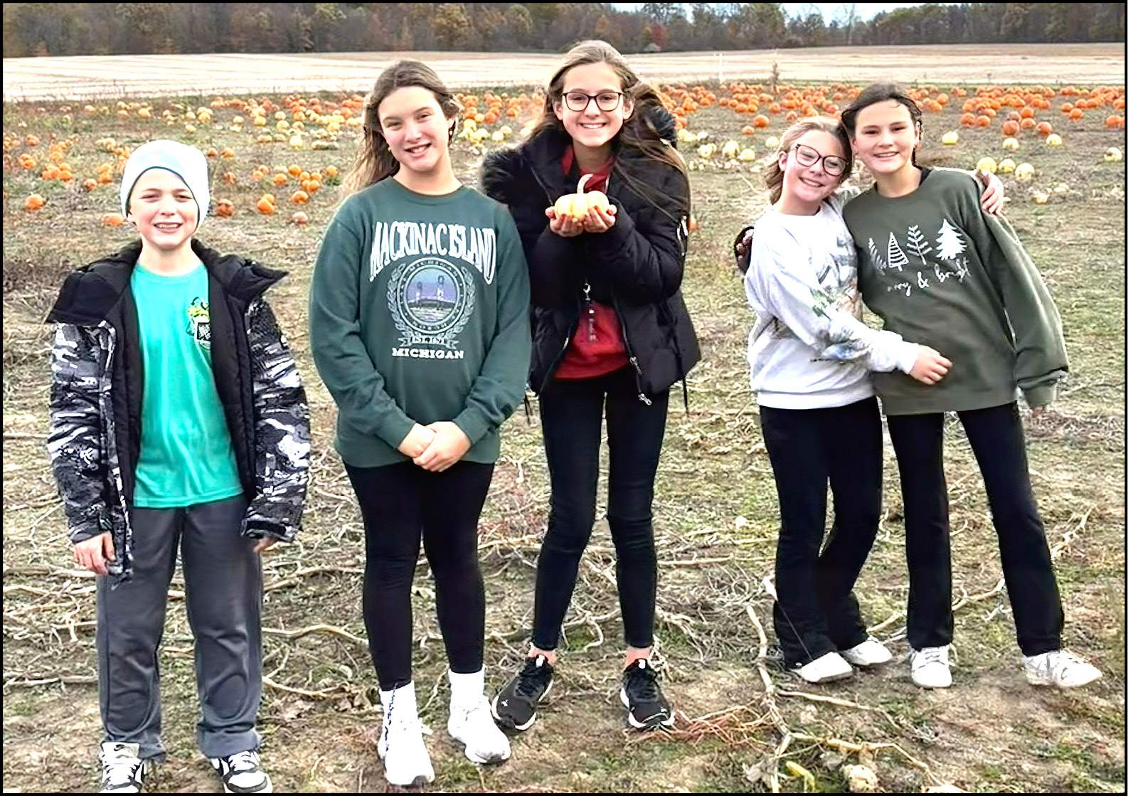 HARD WORK REWARDED … Stryker 5th and 6th grade hard working students celebrated their achievements with an amazing reward trip to Votaw Farms! They worked their way through the twists and turns of the corn maze, working together to find their way out, explored the pumpkin patch, and enjoyed more fall activities. The students enjoyed their day of fun and made lots of memories! Pictured above on their field trip is Caiden Martin, Arianna Wallace, Peyton DeGroff, Aianna Worley-Peace, and Lexie Williams.