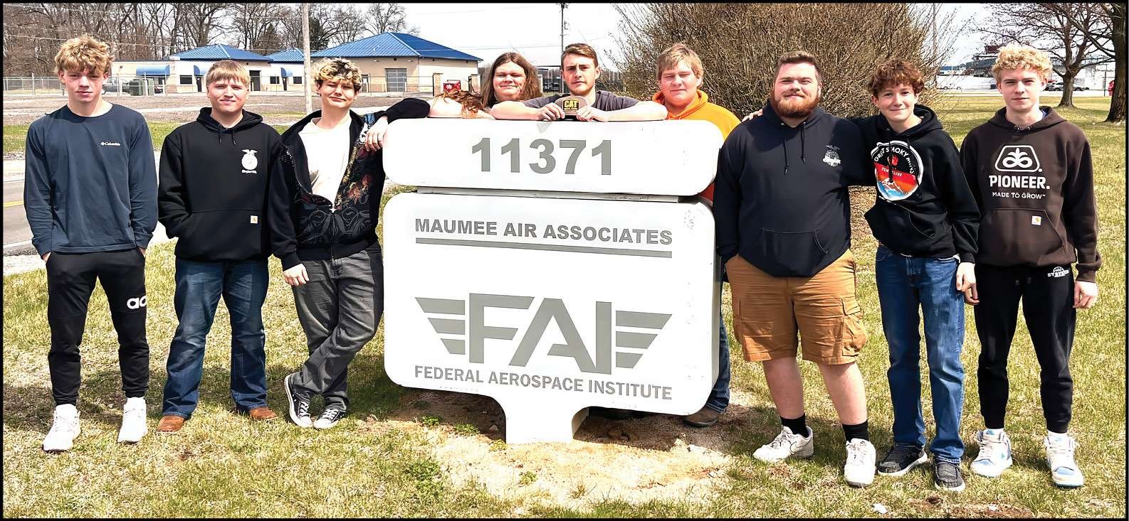 AEROSPACE TOUR … Stryker High School FFA toured the Federal Aerospace Institute at the Toledo Airport on Friday, April 4th. The experience ignited passion for aviation in our students and provided them with a deeper understanding of the field. We appreciate their commitment to educating the next generation of aviation professionals. Pictured are Andrew Batterson, Walker Wyse, Mike Damms, Hunter Lasley, Weldon Wyse, Owen Zachrich, Rustin Nafziger, Austin Werts, Abram Batterson.