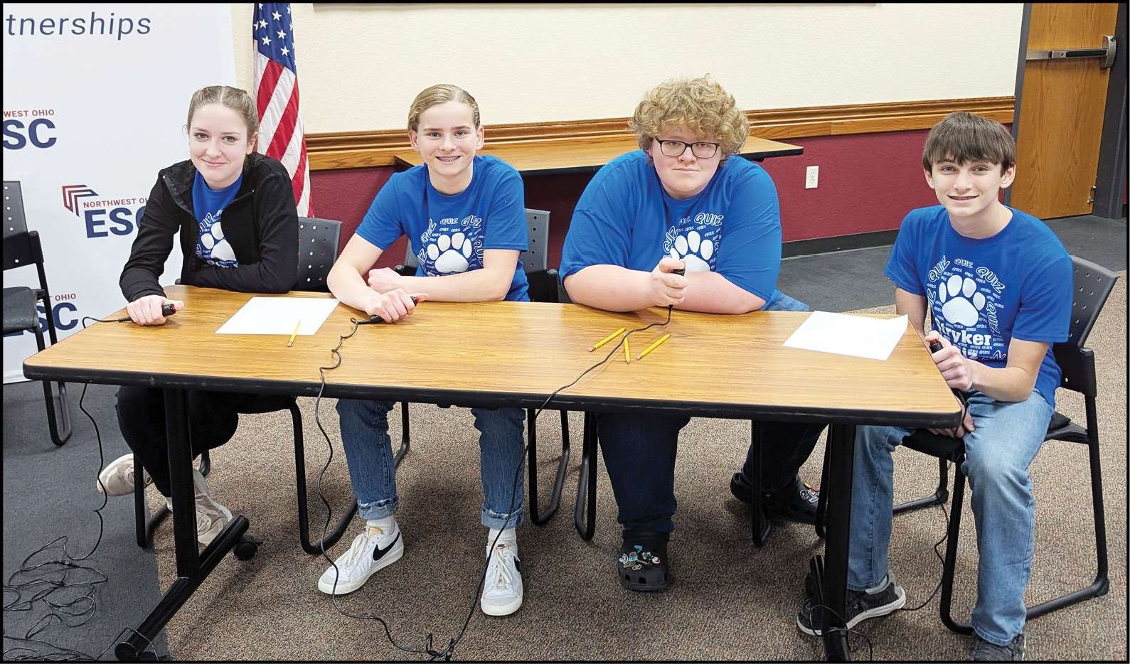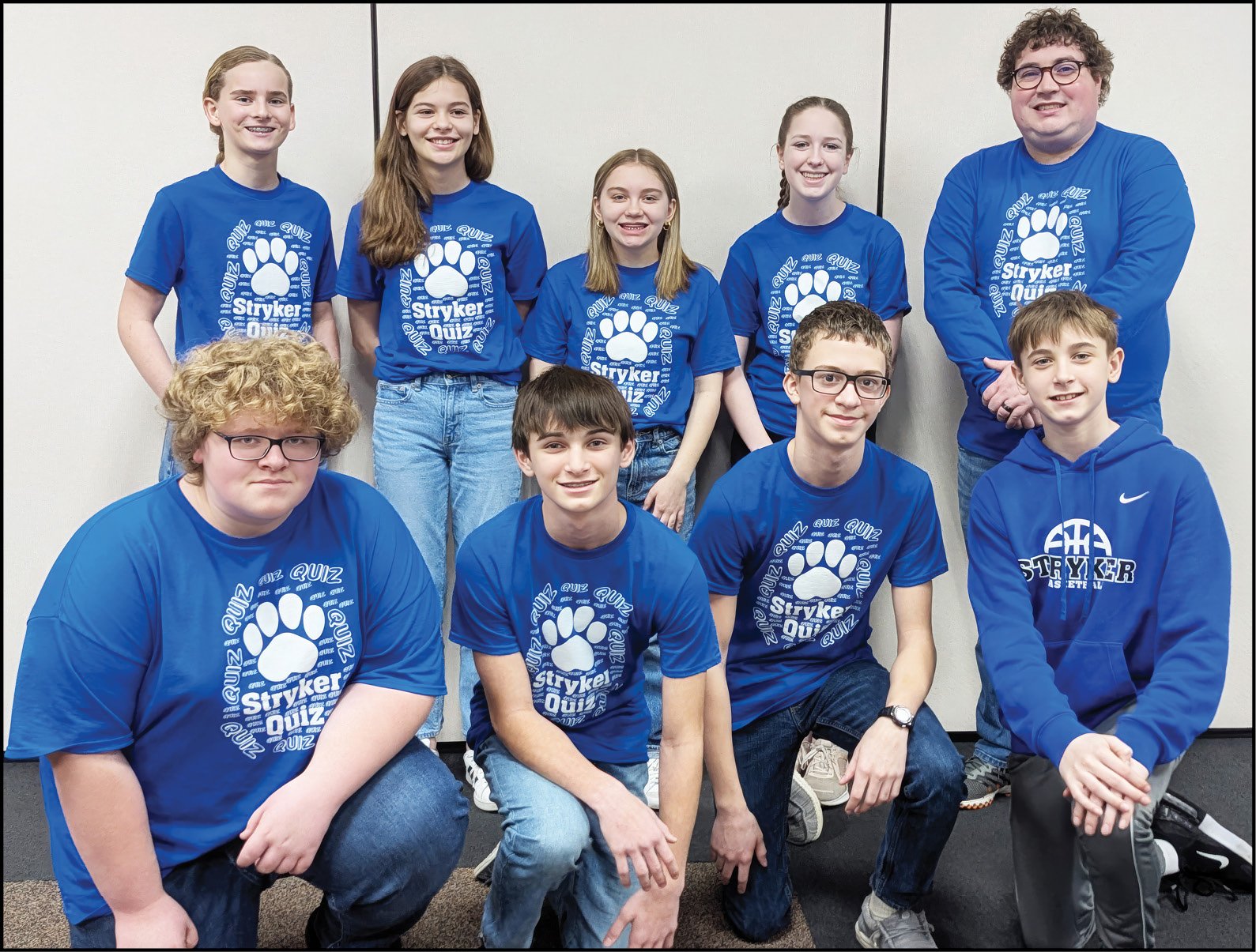 QUIZ BOWL … Eight Williams County JH Quiz Bowl teams competed against each other on Friday, February 28. Stryker had two teams competing with one team placing third and the other team finished seventh. The third place team (top photo) consisted of Breanna Cheeseman, Brenna Creighton, Mason Roderick, Braiden Bernham. Placing seventh was the team of (included in above photo) Noah Andres, Abel Batterson, Grace Oberlin, Averey Blevins.
