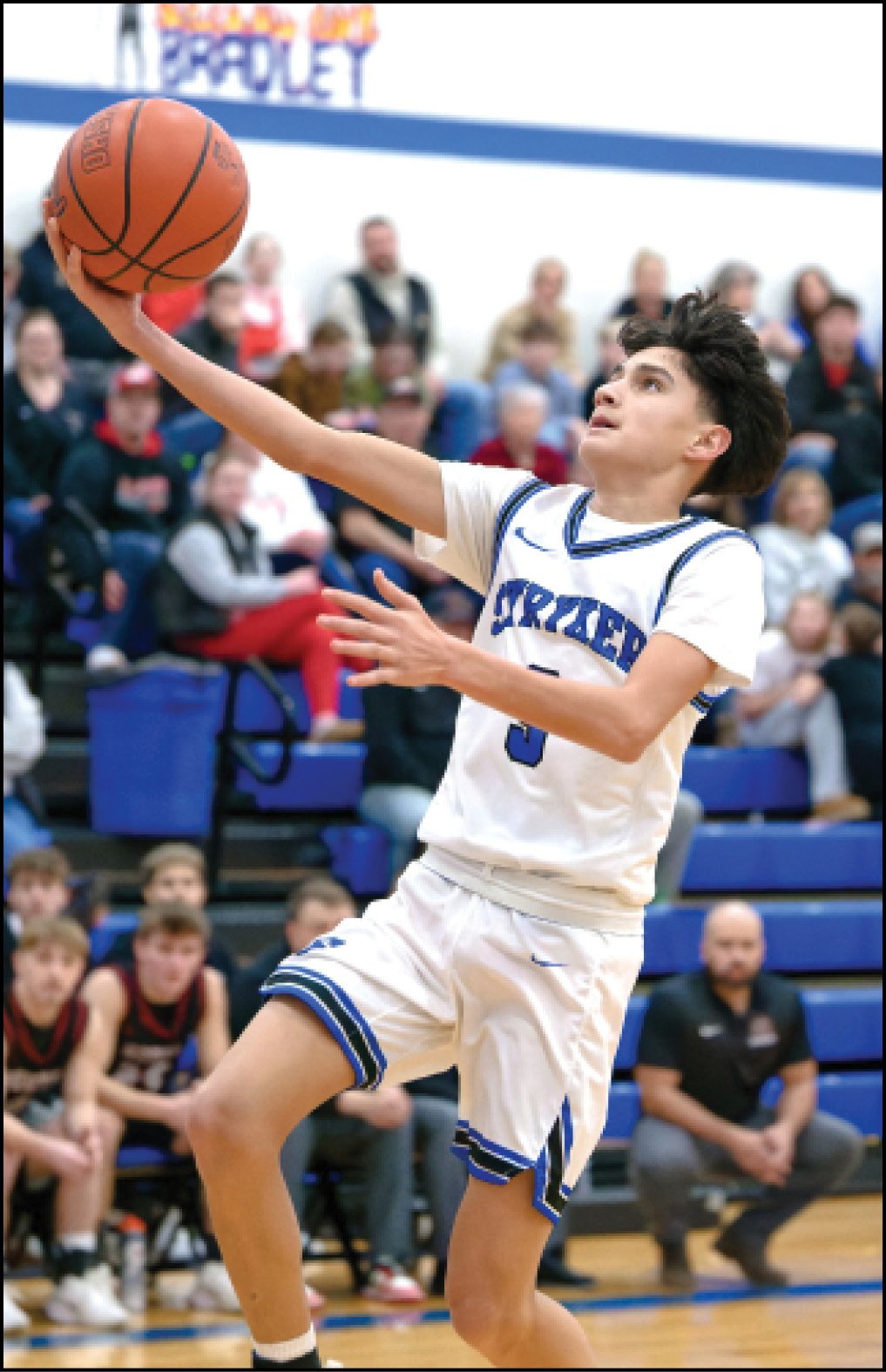 STRYKER SENIOR … Bradley Williams glides in for a layup in the first half versus North Central. VIEW 103 PHOTOS OF THIS CONTEST FOR FREE AT WWW.THEVILLAGEREPORTER.COM