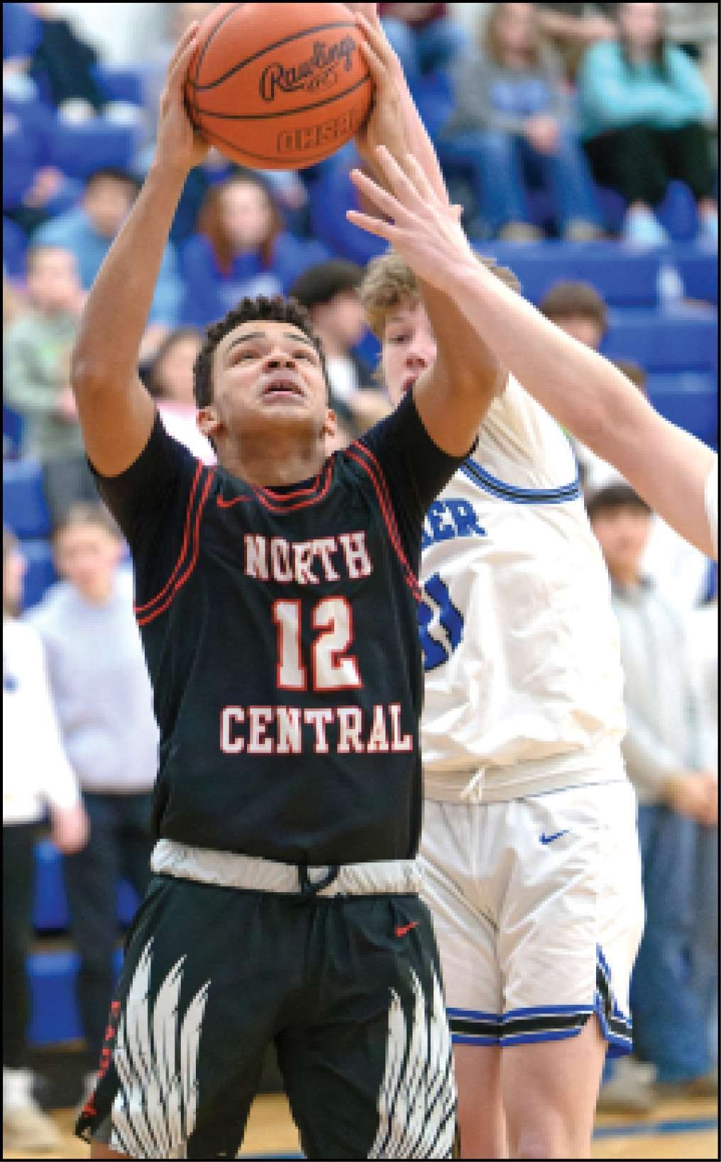 BBC ACTION … North Central’s Zack Whitley gets inside for shot in the Eagles BBC game at Stryker last Friday.