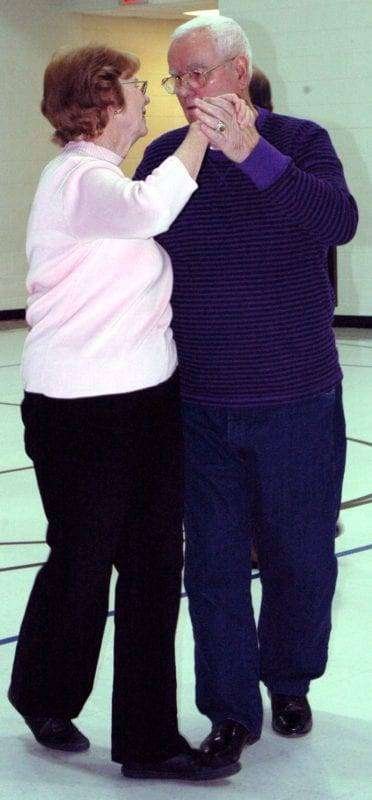 I’M IN HEAVEN…Marilyn Osborn & Duane Sumner of Kunkle/Pioneer area seem to enjoy each other’s company on the dance floor during the dance lesson.