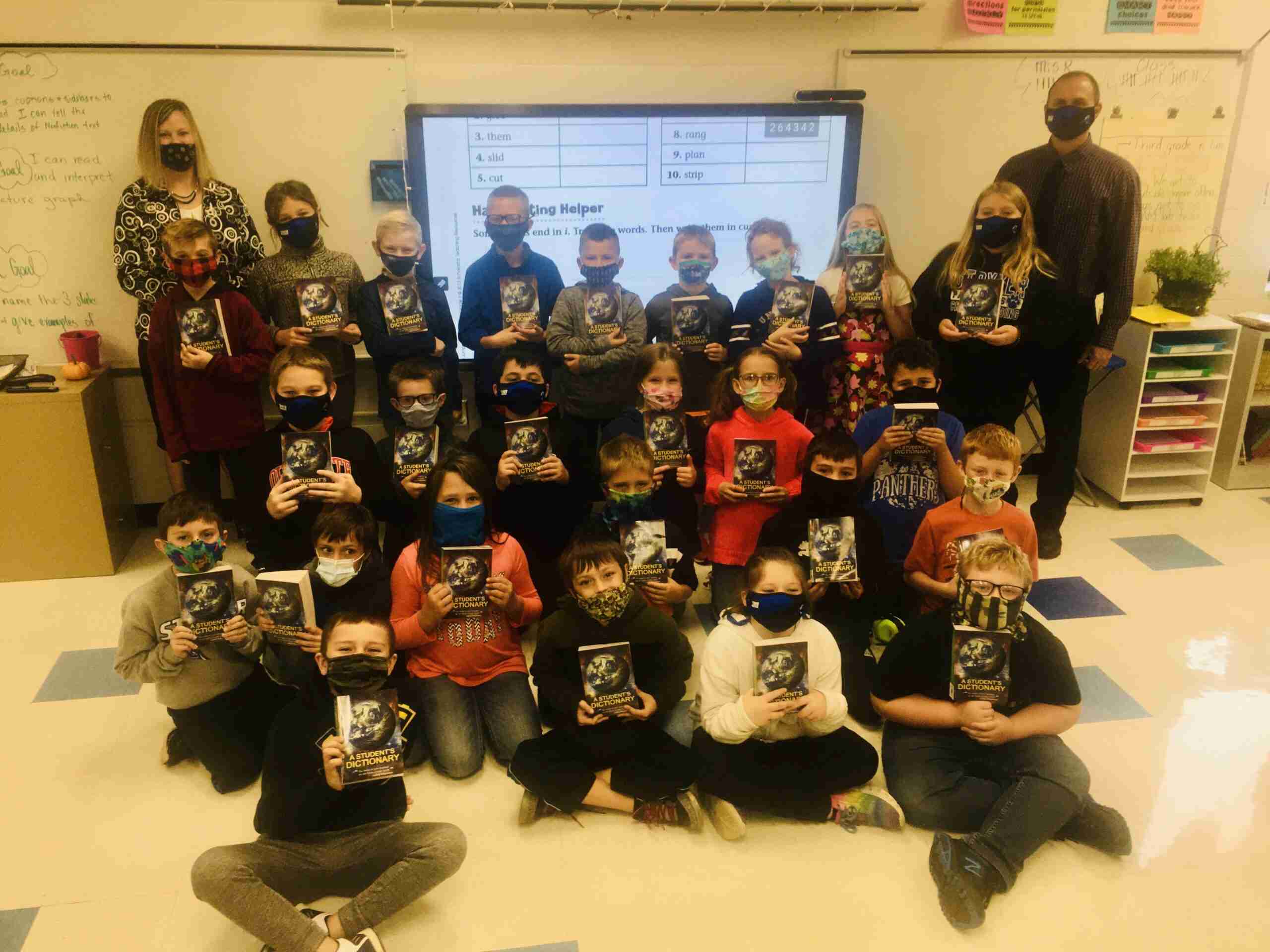Each year the Stryker Rotary Club provides dictionaries for the third-grade class. The COVID-19 virus modified the delivery process as the presentation was done by the school administration. This picture shows all the class members holding their dictionary. The club feels honored to support the learning process of our local children.