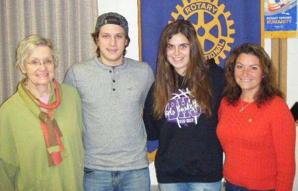 Caio Favoretto and Victoria Carpenito told the Stryker Rotary Club of their experiences in the Youth Exchange Program. Susan Mack brought Caio to the meeting as he is being sponsored from the Hicksville Rotary Club. Caio is considered a special request participant because both his brother and brother-in-law also came to Hicksville in prior years, so the Hicksville club has developed a tie with his family. Caio is from Brazil and is seventeen years old. While in school at Hicksville he participated in the high school football program. Unfortunately he sustained an injury in football that required surgery, and he said he was pleasantly surprised at the support he received from the club and the community. Victoria is being sponsored by the Bryan Rotary Club and is attending school in Bryan. Victoria’s home is in Belgium and she is eighteen years old. Victoria came to the meeting with Bonnie Kimpling-Kelly, who is on the Youth Exchange Program Committee for Bryan’s Rotary Club. Rotary District 6600 is one of several districts working together to operate the Youth Exchange Program. The program receives 90 students from many different countries, and sends 90 students to other countries each year. The students participate in either a short-term or long-term exchange program. Long Term students leave in August and return home in July so they are away for just under a year. Short-term students are away for a six to eight week period of time. Students who have participated all feel the program has been a great benefit to them as they have an opportunity to learn about other countries. The club also heard that many of these students develop lifelong relationships with host families. Pictured from left to right are Susan Mack, Caio Favoretto, Victoria, Carpenito, and Bonnie Kimpling-Kelly. The group spoke as a guest of Stryker Rotarian Ken Culler (not pictured).