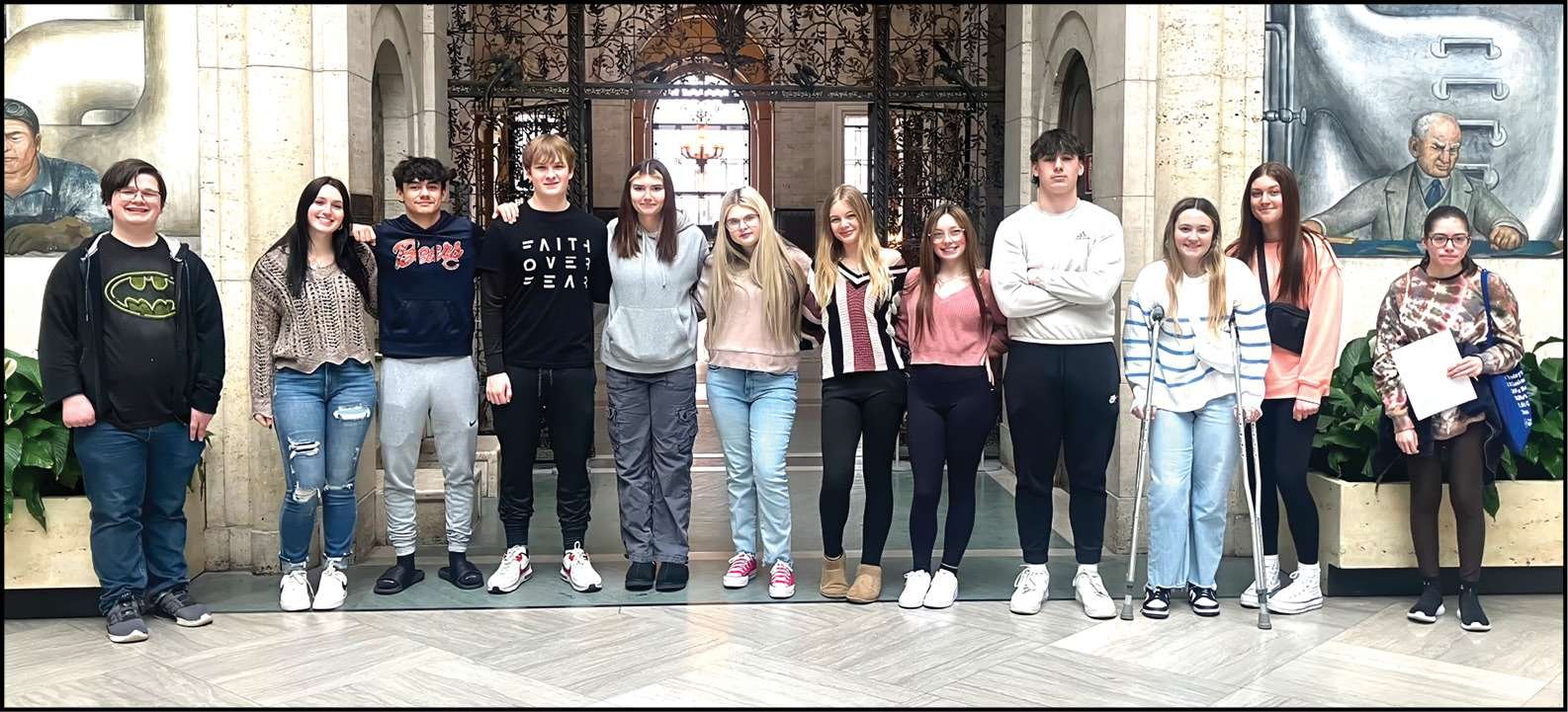 CLASS TRIP … Sophomores, juniors and seniors (above) from Stryker Local Schools Spanish and Art Club traveled to Detroit Institute of Art to see Diego Rivera’s Detroit Industry Murals as well as other artworks. Students had a guided tour and also had an opportunity to explore their own interests. The students enjoyed the day with several mentioning wanting to return and also being able to see how things are different outside of Williams County! Afterwards the group enjoyed Detroit style pizza at Buddy’s Pizzeria.