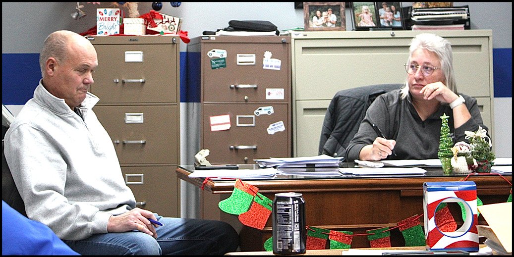BUILDING REPAIRS … Administrator Alan Riegsecker updates council on the ongoing foundation issues the Stryker Village Town Hall is experiencing.