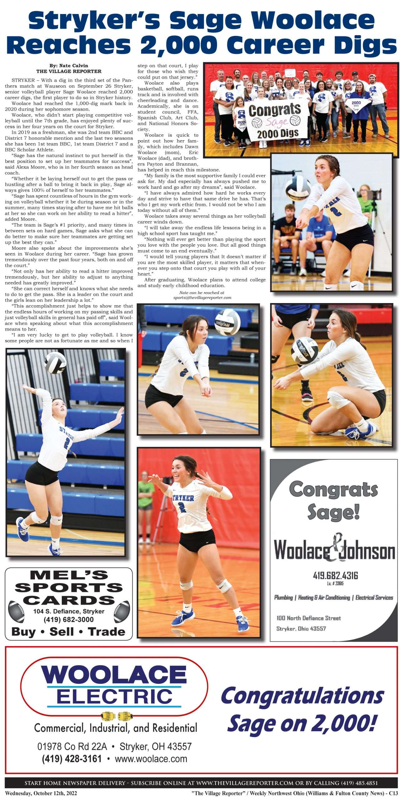 Home»Sports»Stryker’s Sage Woolace Reaches 2,000 Career Digs