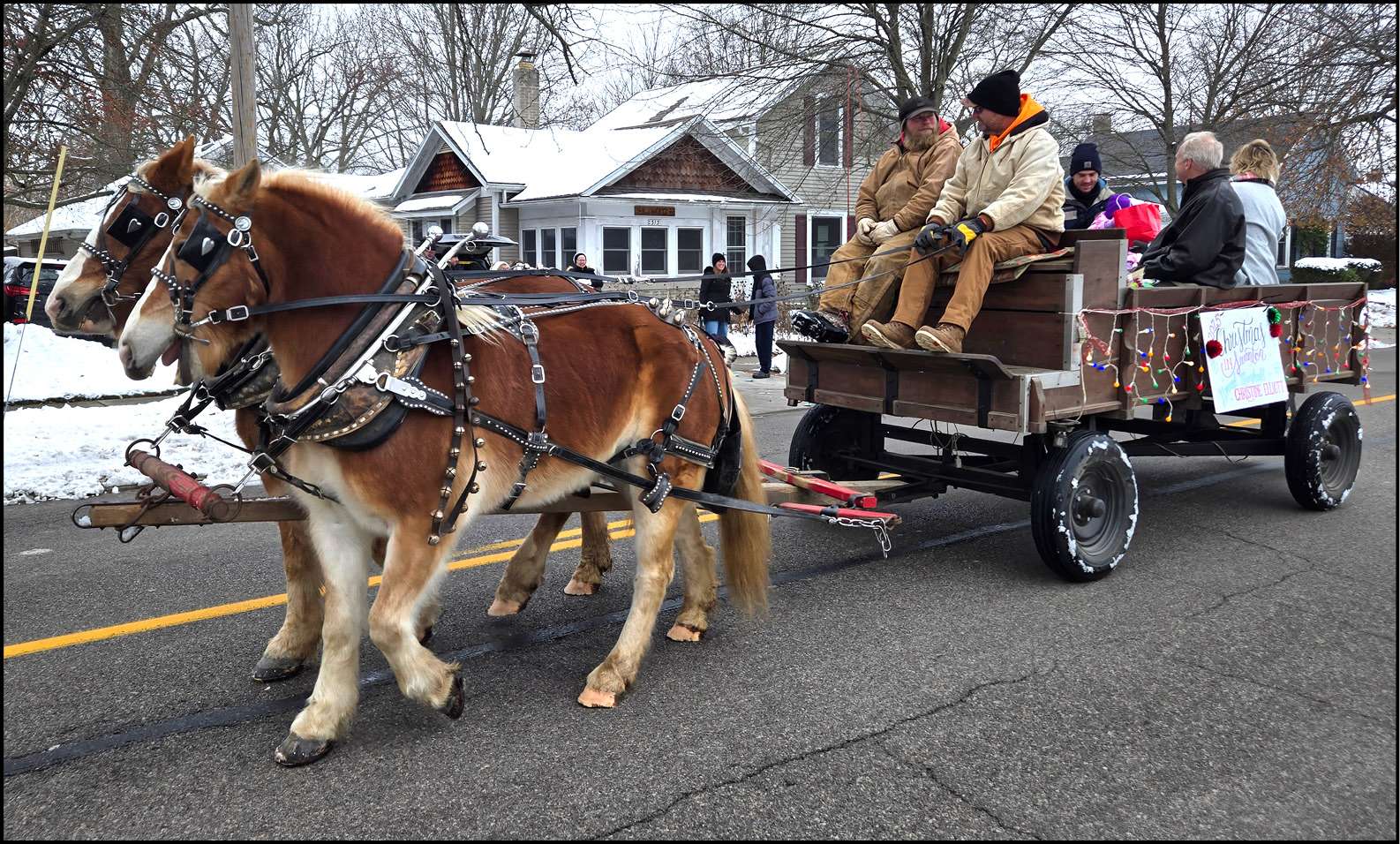 GRAND MARSHALL … A horse-drawn carriage carries Christmas in Swanton parade Grand Marshall Christine Elliott.