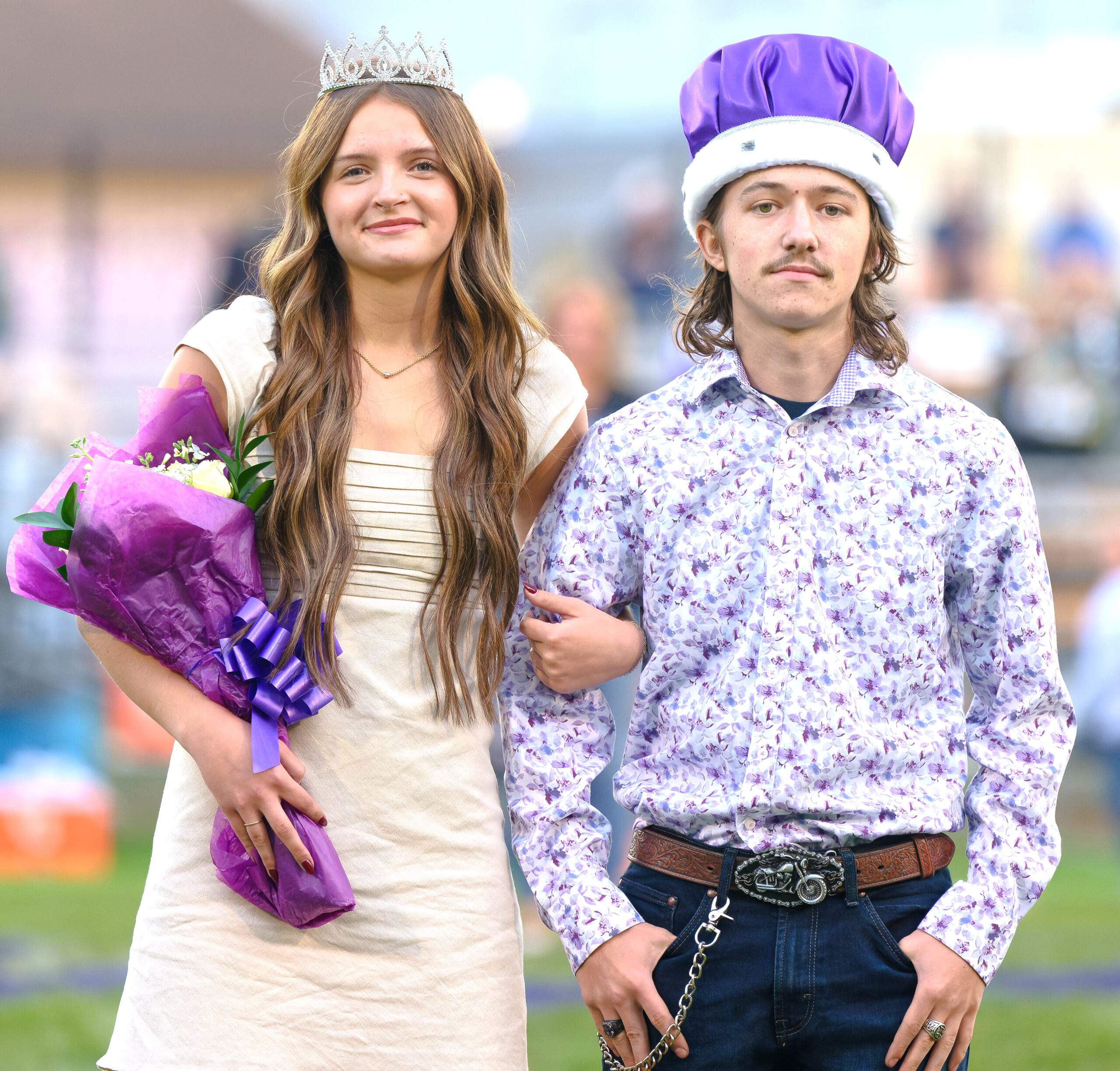 2024 ROYALTY … 2024 Homecoming King Melvin Brown escorts 2024 Homecoming Queen Miranda Yeager back onto the field to help crown this year’s new King and Queen.