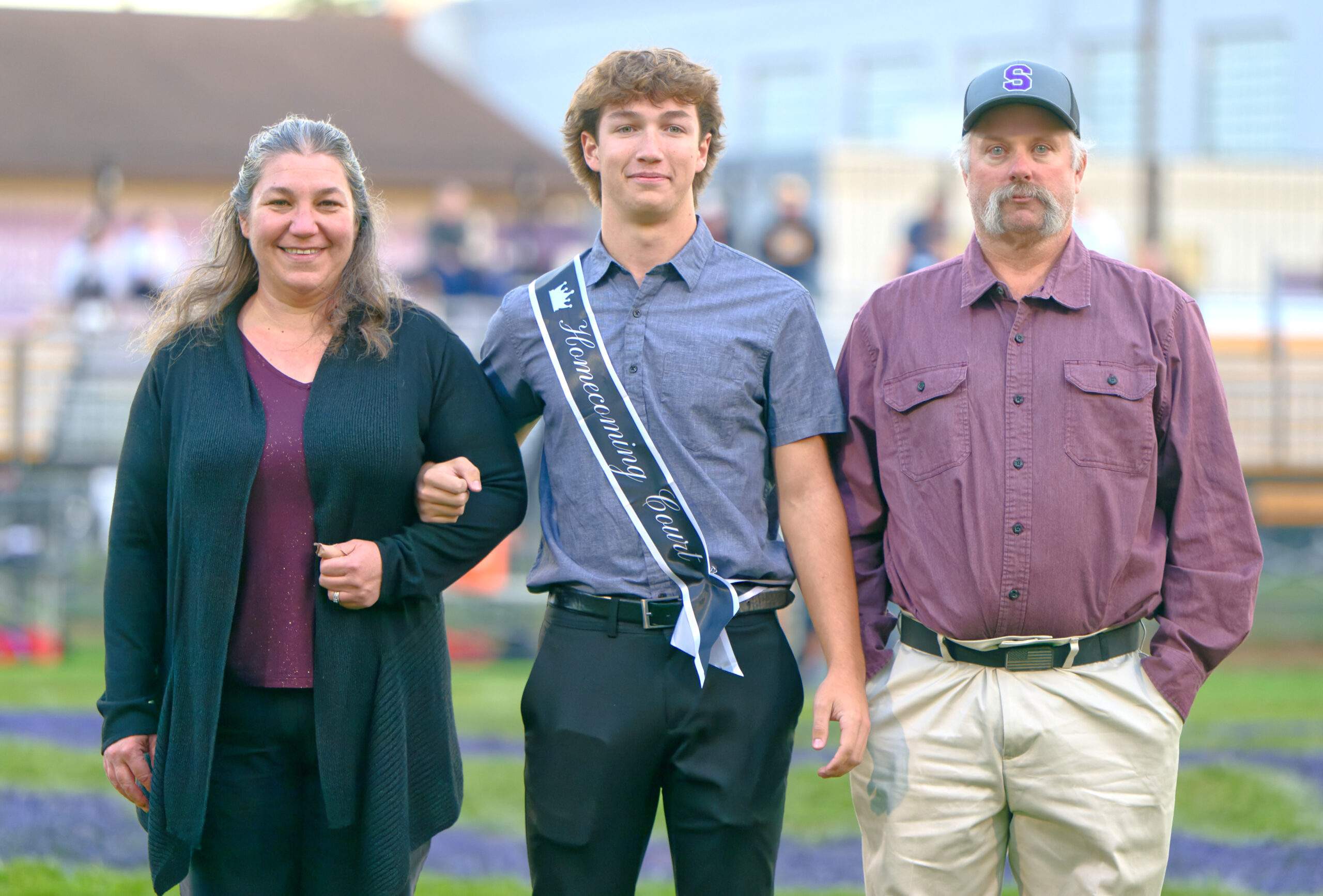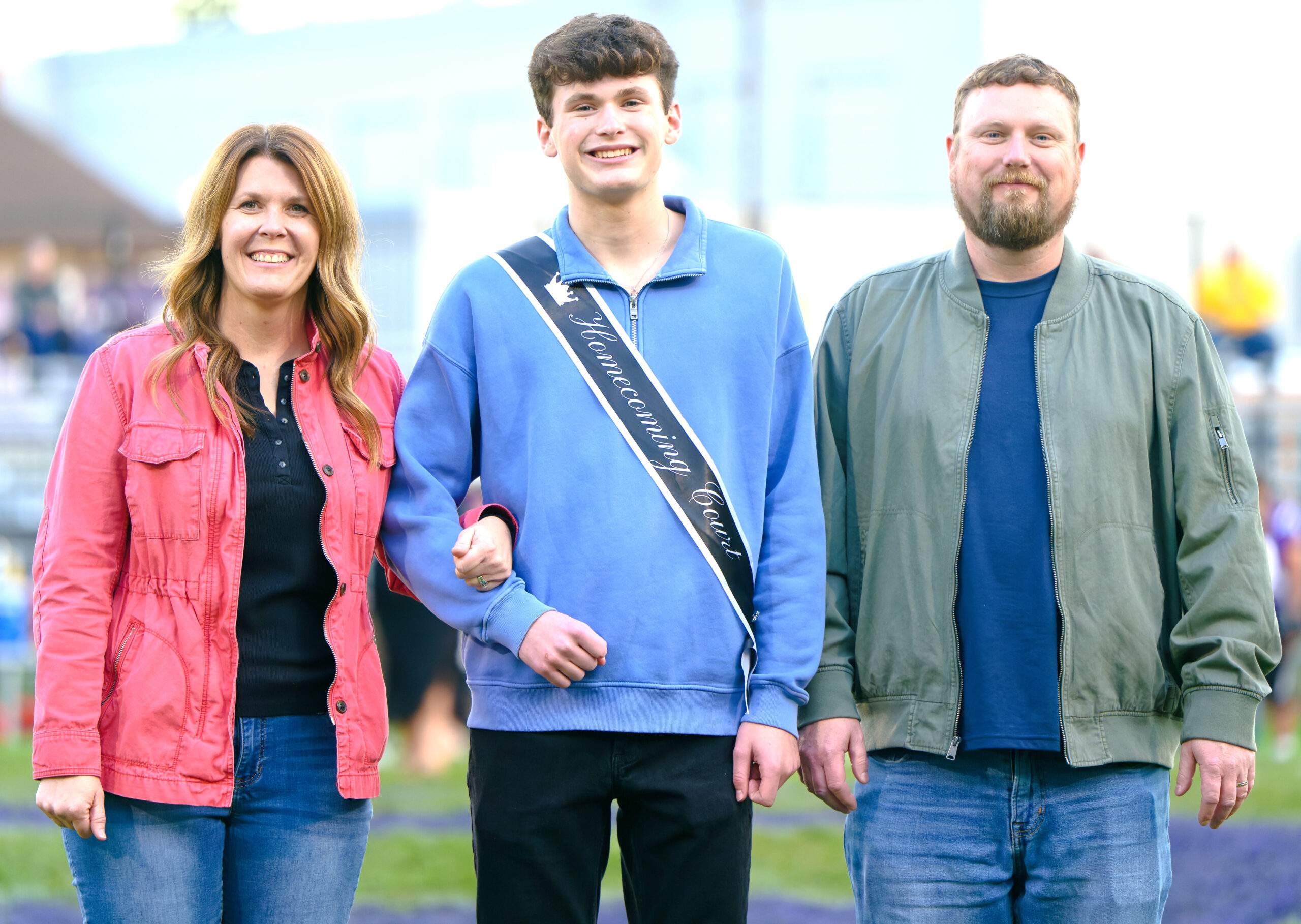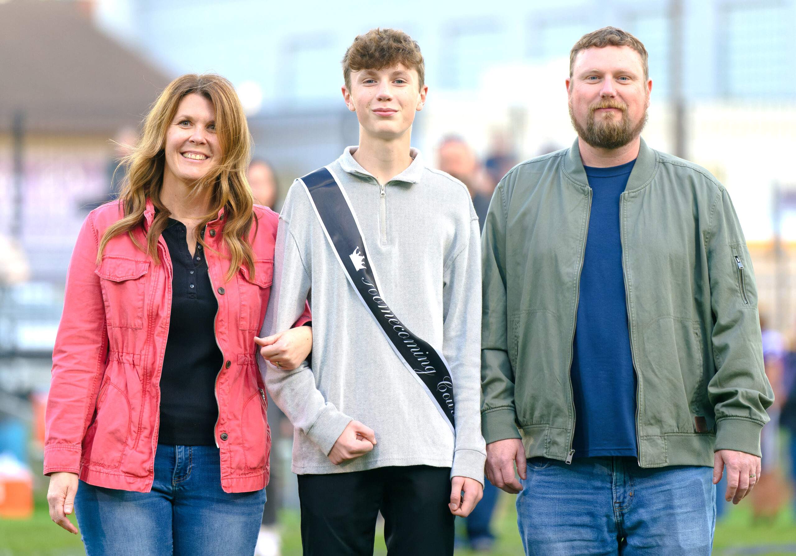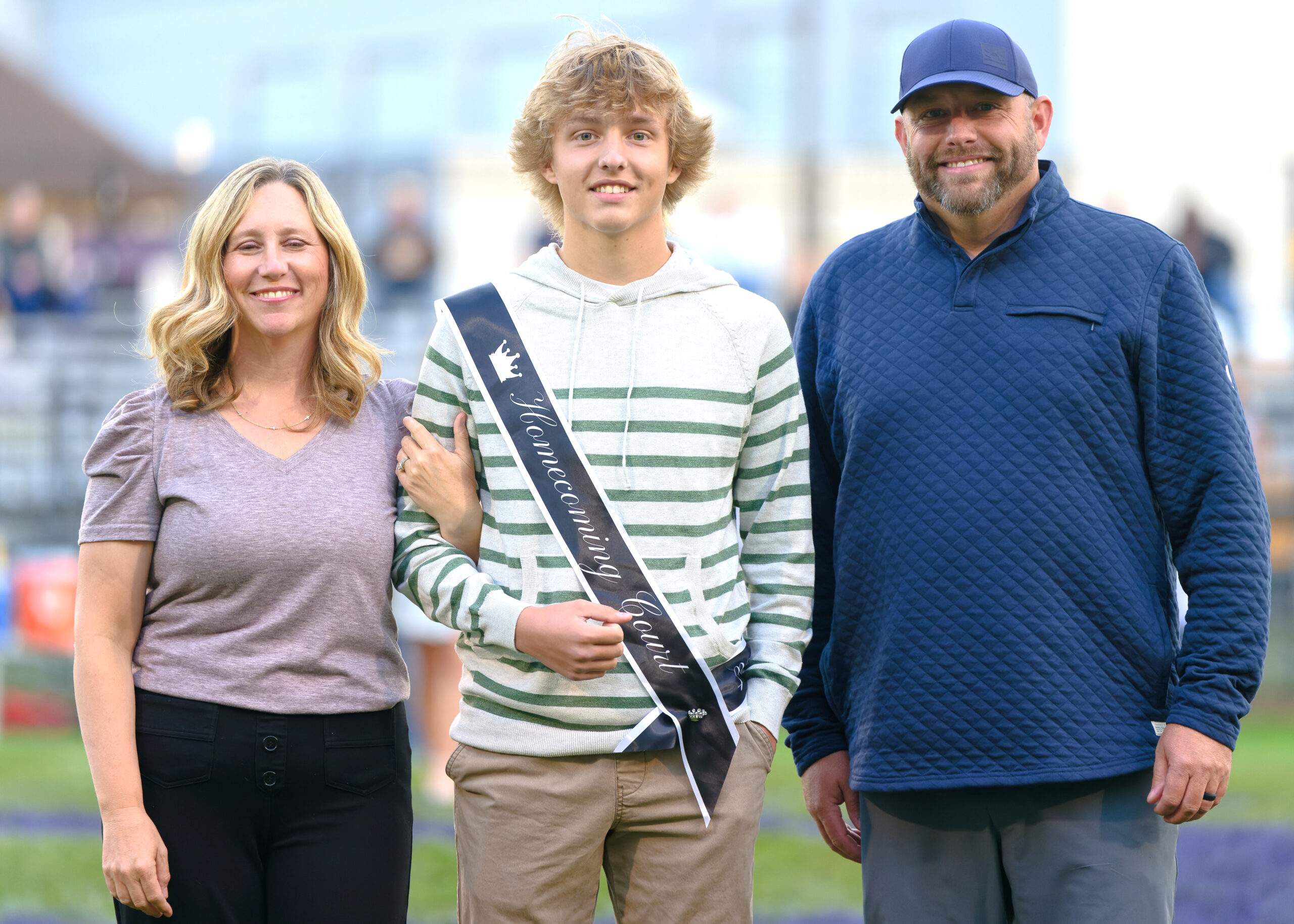 SOPHOMORE … Gavin Voight walks with his parents, Melanie and Rob Voight, during the sophomore portion of the Homecoming ceremony.