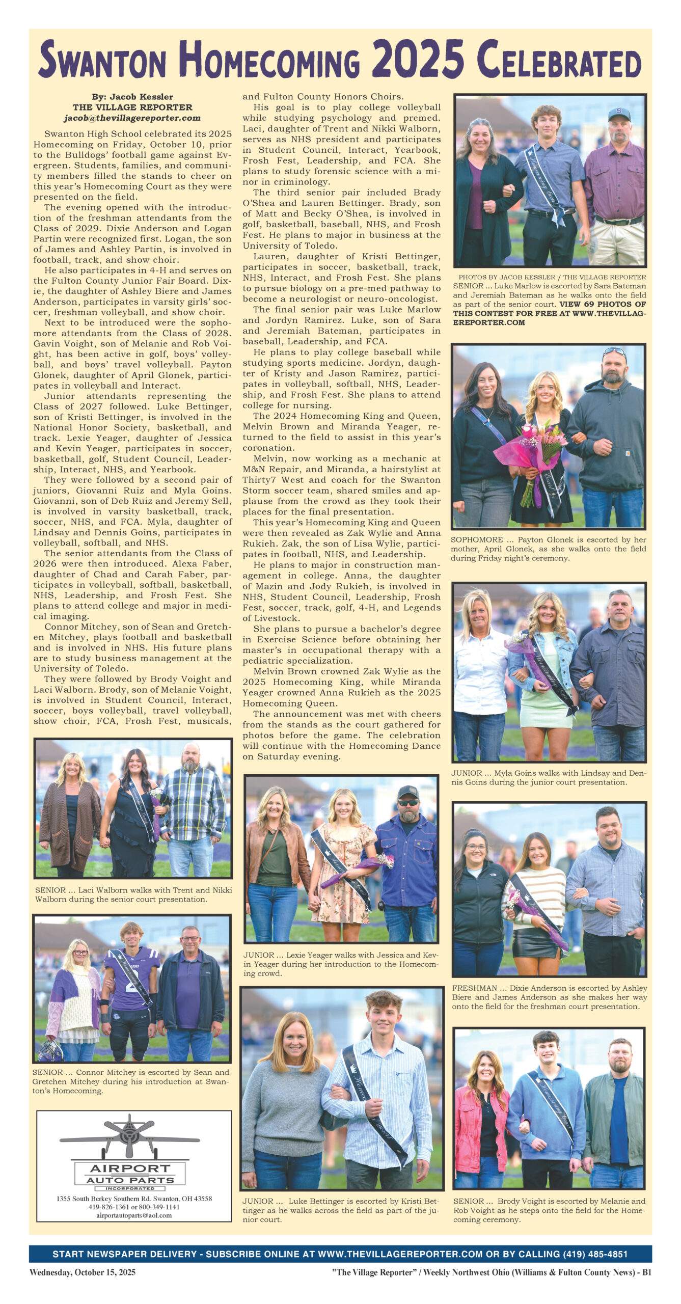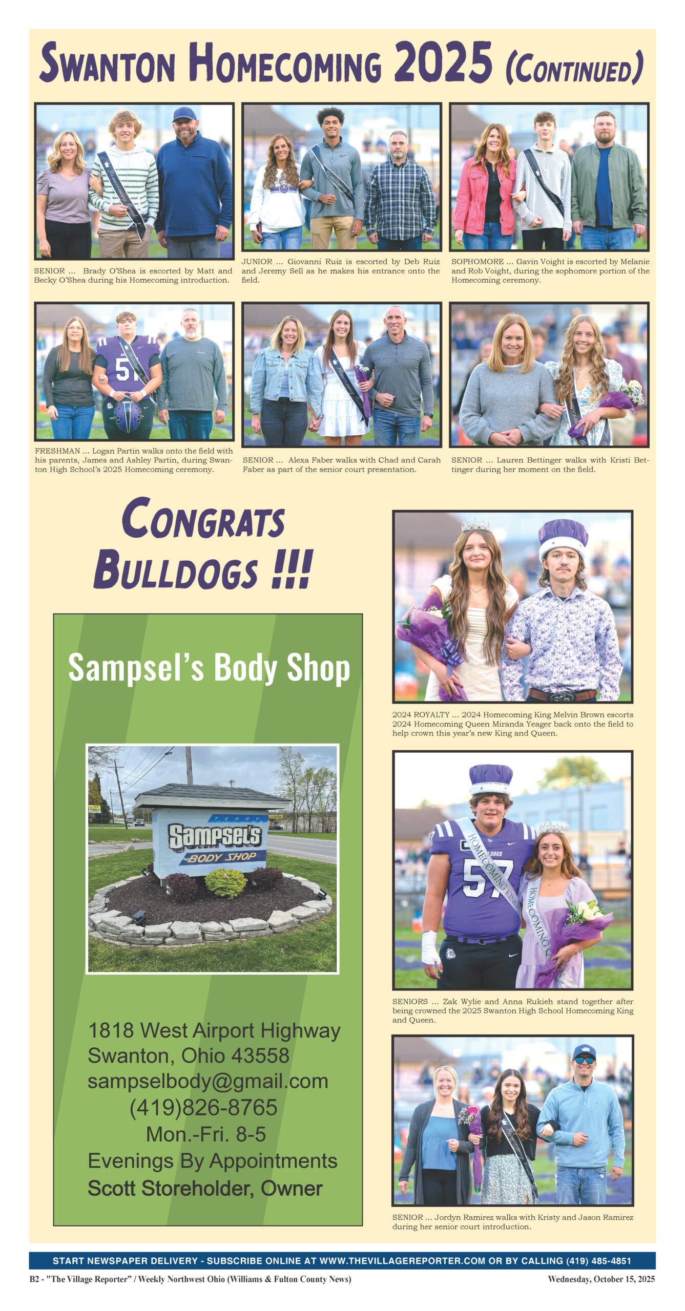 Swanton High School celebrated its 2025 Homecoming on Friday, October 10, prior to the Bulldogs’ football game against Evergreen. Students, families, and community members filled the stands to cheer on this year’s Homecoming Court as they were presented on the field.