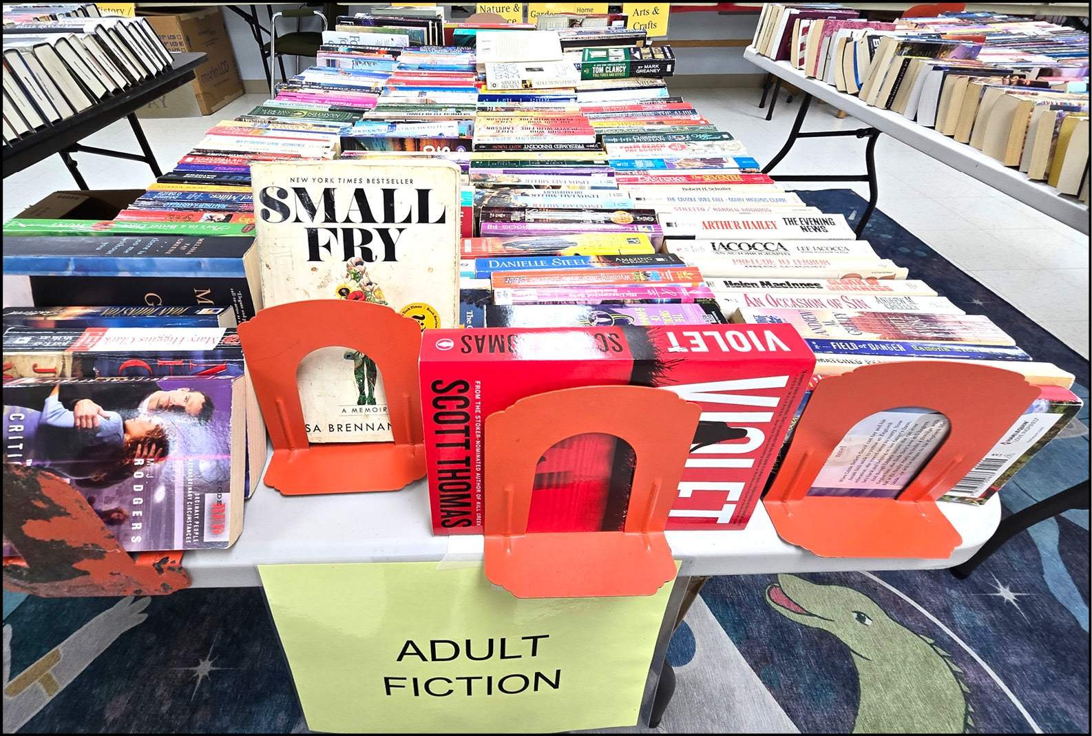BOOK SALE … Books in the Friends of the Swanton Public Library’s annual used book and media sale sit organized on tables in the library’s awaiting new homes.