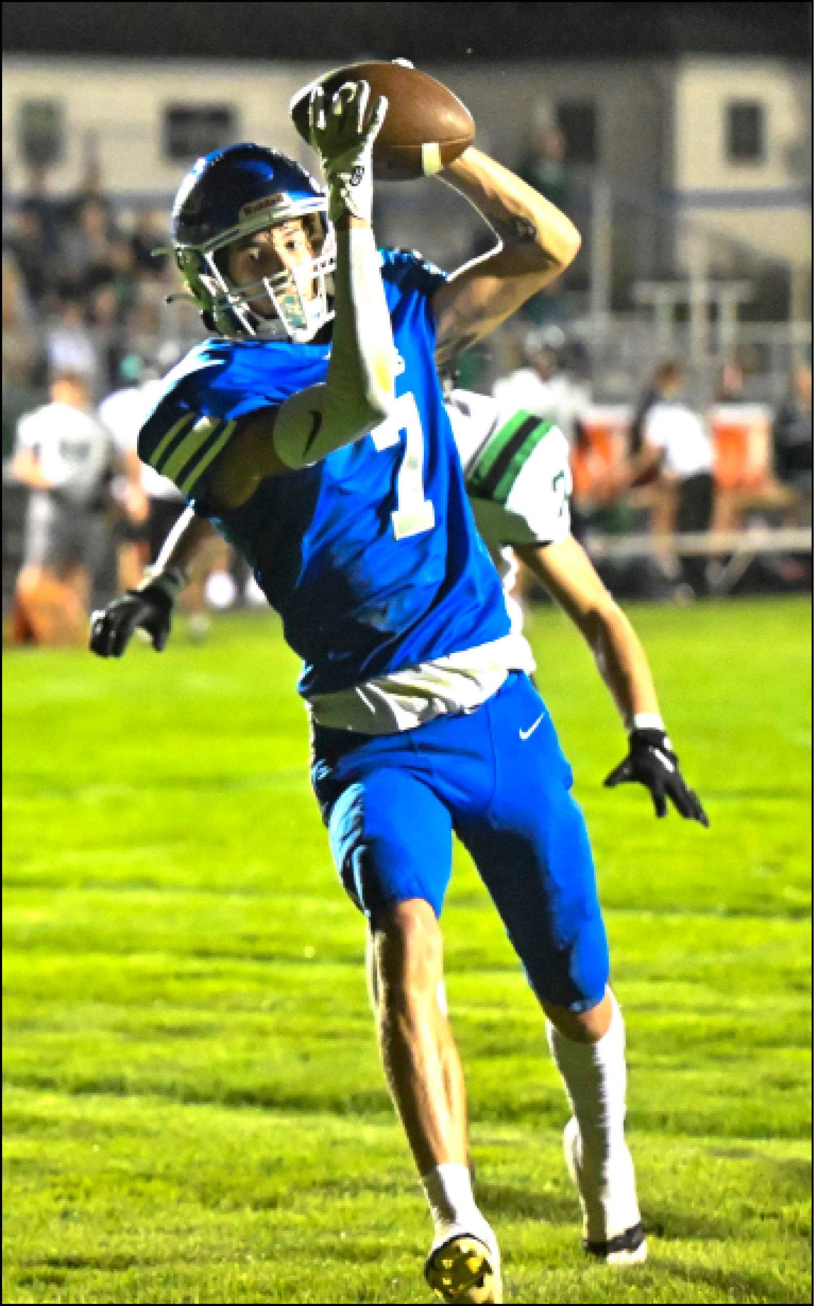 TAAC LEADERS … Edon receiver Eli Dickmann hauls in a pass over the middle in Edon’s 34-12 win over Ottawa Hills.