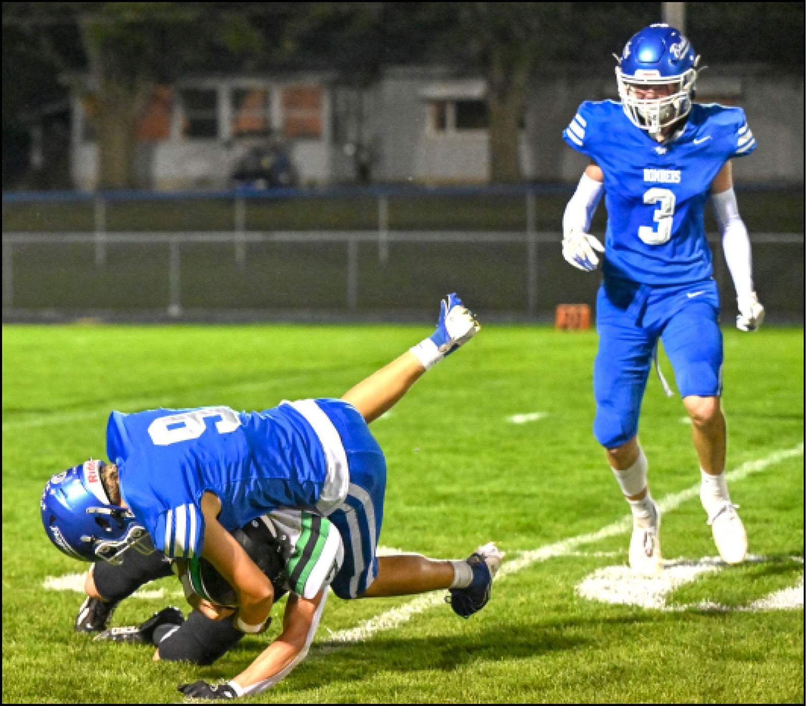 SPECIAL TEAMS … Edon’s Logan Reitzel makes a tackle on special teams on Friday night versus Ottawa Hills.