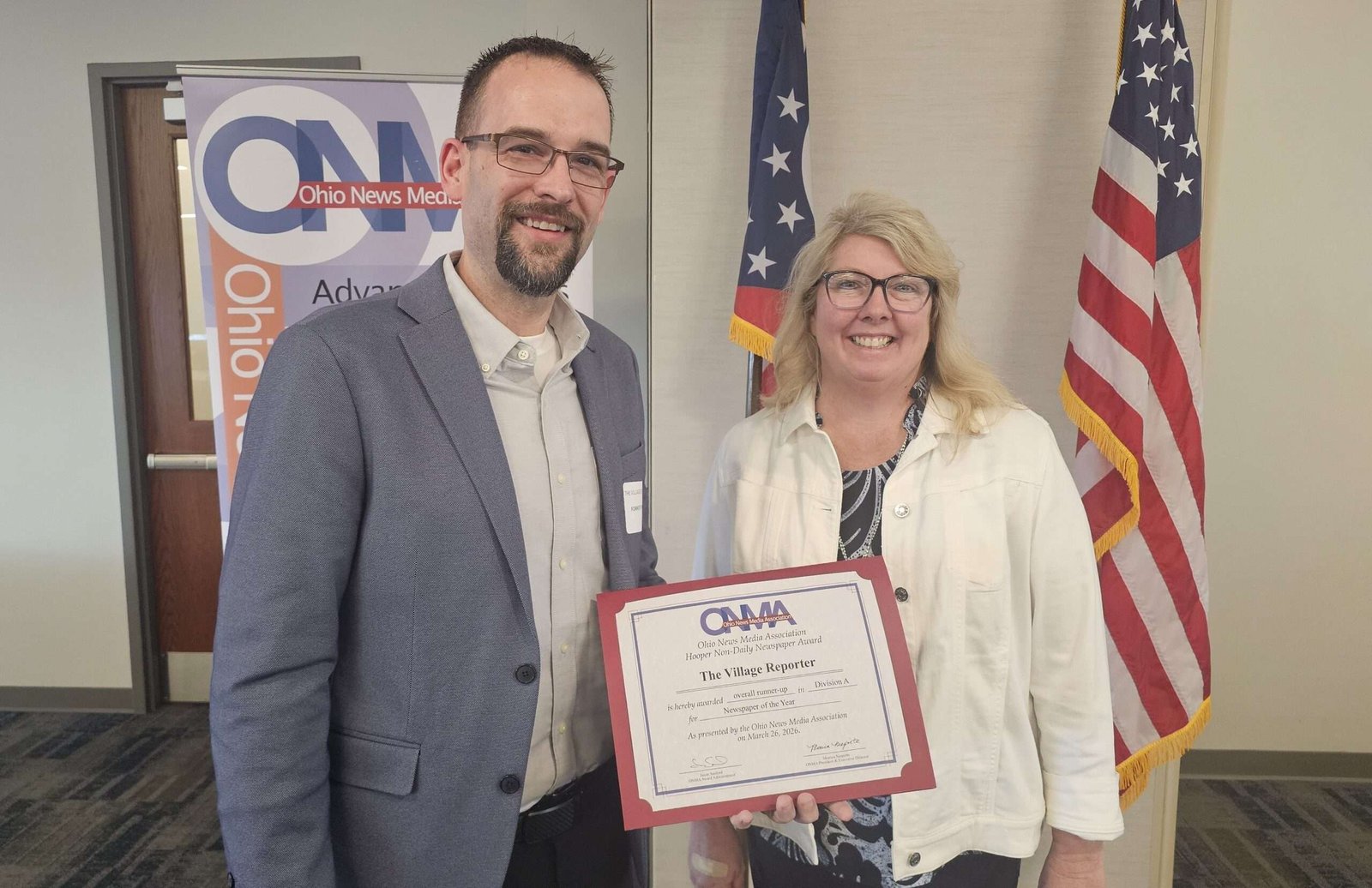 Westerville, Ohio — The Village Reporter was named the Overall Runner-Up for Division A Newspaper of the Year and brought home 12 additional awards at the 2026 Ohio News Media Association Fellowship Day, held March 26 in Columbus. The honors came in the annual Osman C. Hooper competition, the state’s premier contest for non-daily newspapers, where The Village Reporter earned a first-place finish in News Coverage among the state’s largest non-daily publications.