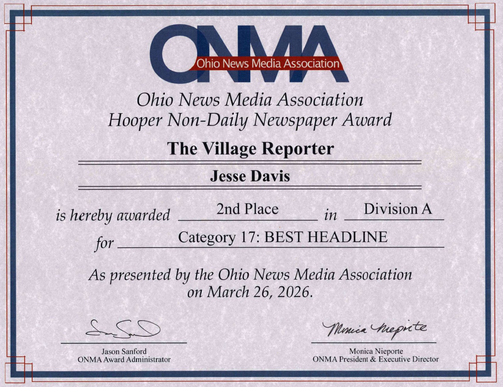 The Village Reporter earned 12 awards at the Ohio News Media Association’s annual Hooper competition.