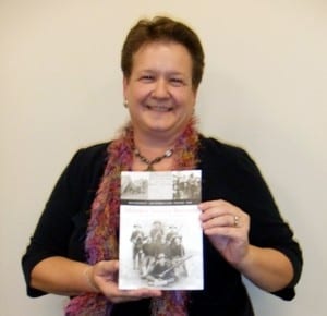 Tanya Brunner holding a copy of “Military Service Records at the National Archives”, which were handed out to attendees.