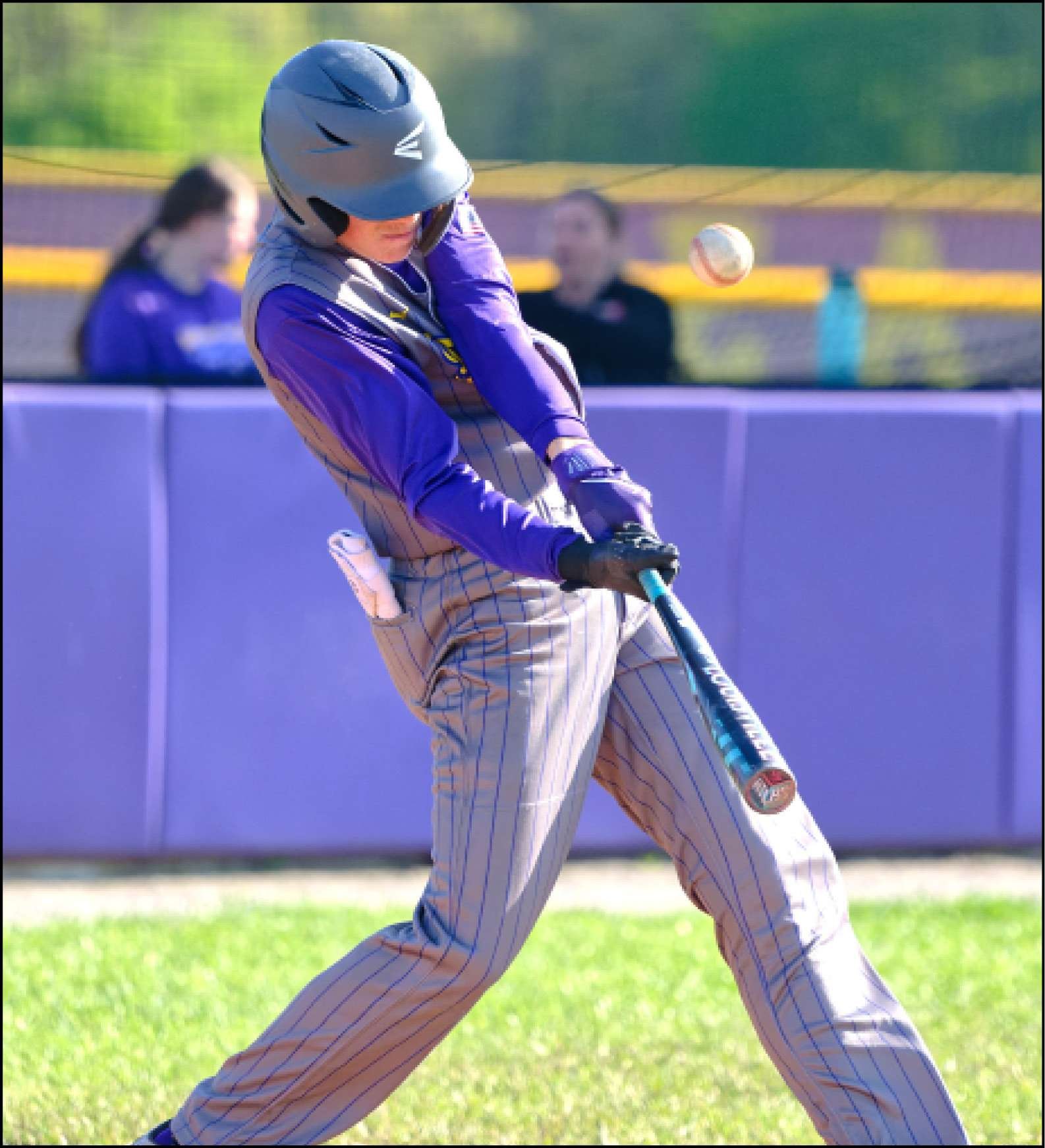 HOME CONTEST … Fayette’s Wyatt Bieber fights off a pitch during an at-bat last week versus Hilltop.